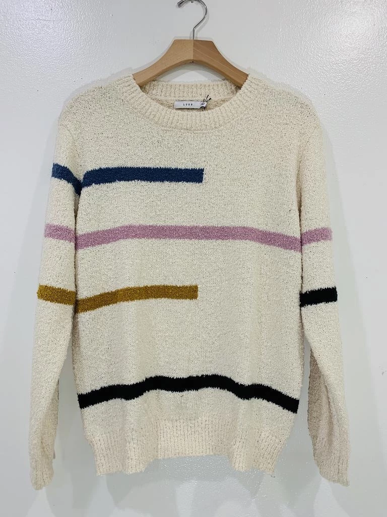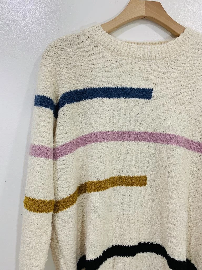 Meet the Maddie Striped Sweater. Delcious and cozy as could be with striped details. A looser fit, high neckline and perfect for the holidays!