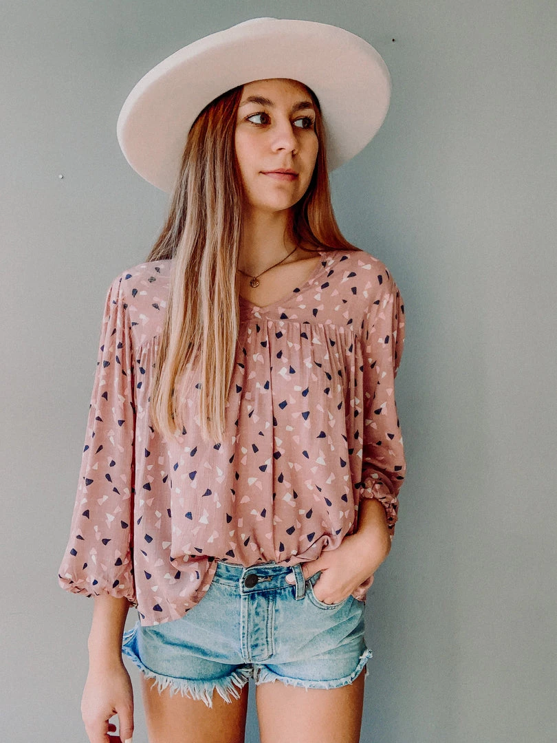 Our Mad About Mauve Top is so cute worn blousy and loose, or tucked into your favorite denim. A great blouse to wear from work to play, dressed up or down, this pretty piece features loose billowy sleeves and a loose body. Great for all body types and bust sizes!!