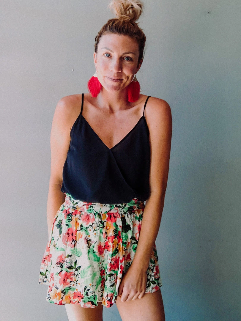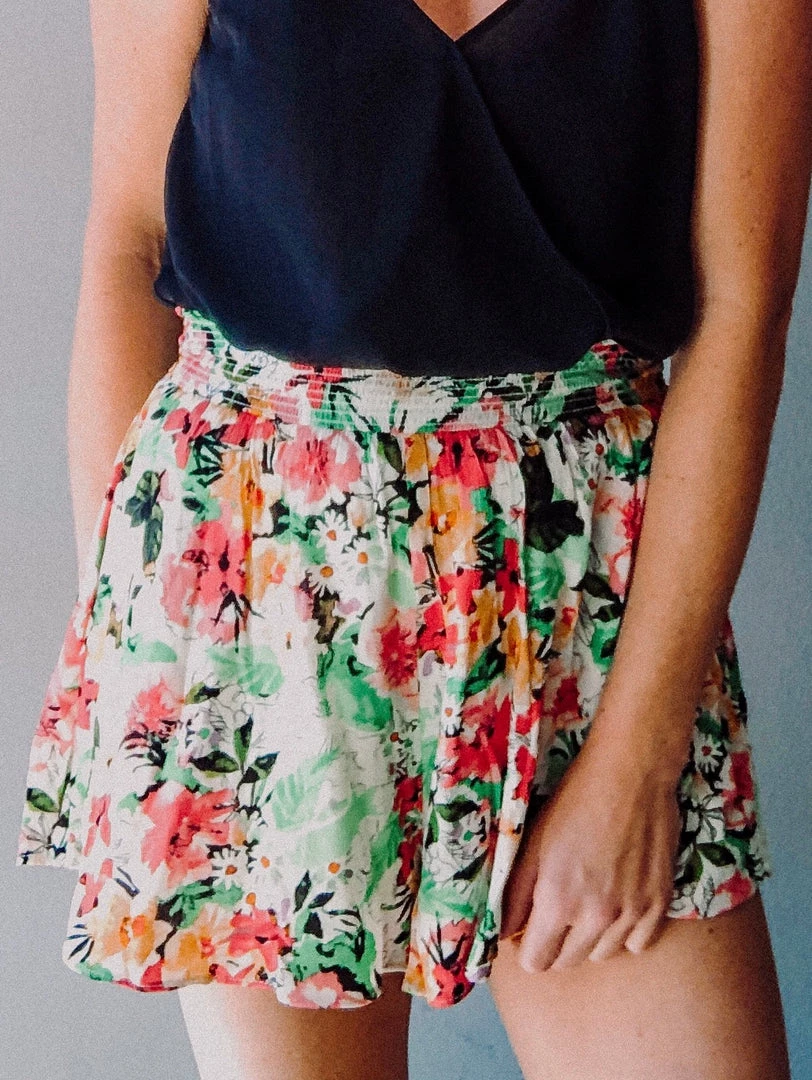 A loose fitting high waisted short with smocked, elastic waist. We love it paired with the Back in Black bodysuit or worn as a set with the Meadow smocked cami.