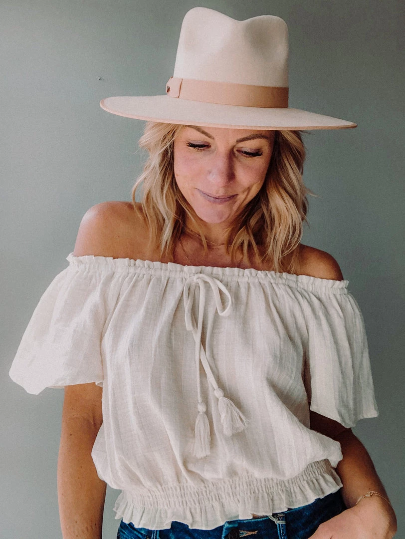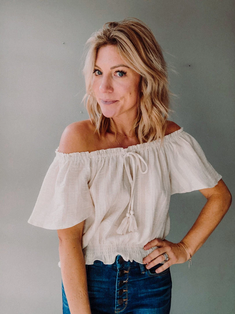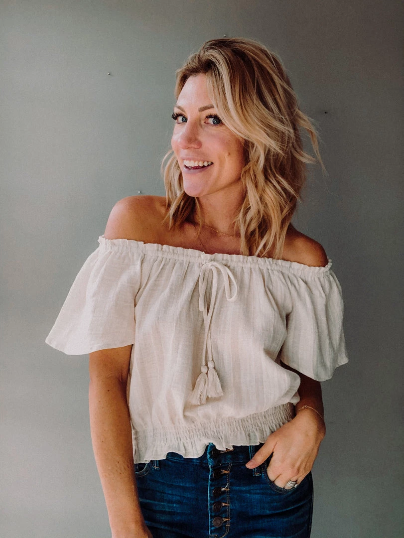 The Meadows Off the Shoulder Top is a delicious, gauzy fabric with elastic, off the shoulder details and a tie front. We love the loose fit of this simple flowy boho basic, that still manages to stay super flattering due to the cinched waist. Perfect to pair with all your denim and cutoffs this spring and summer!!!
