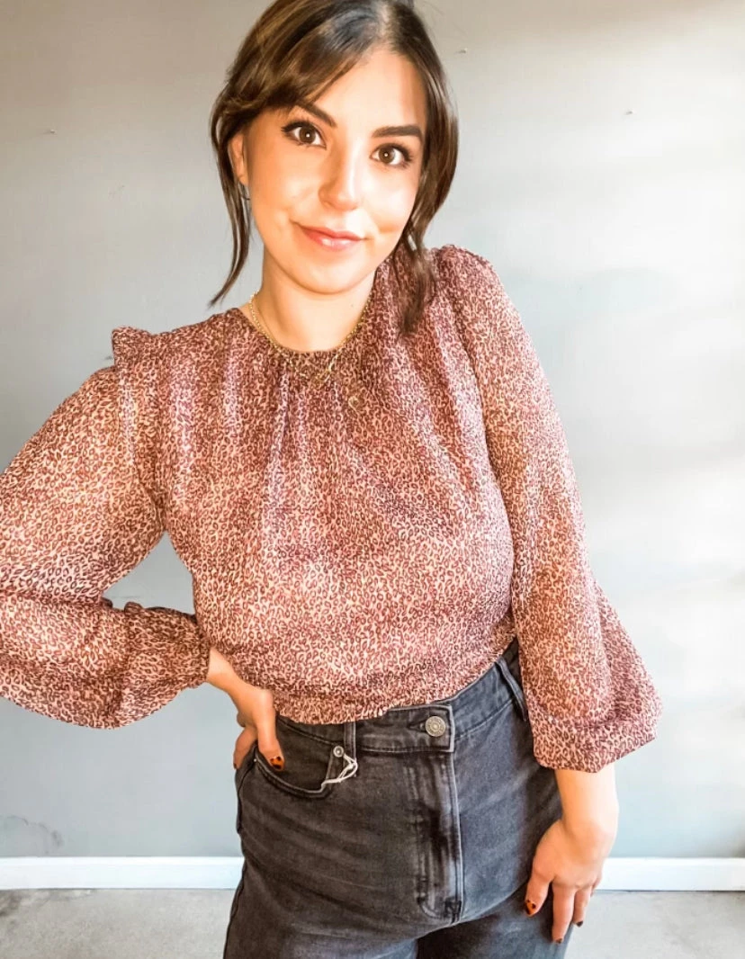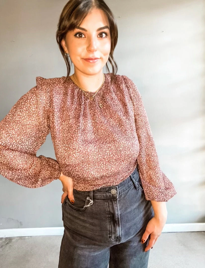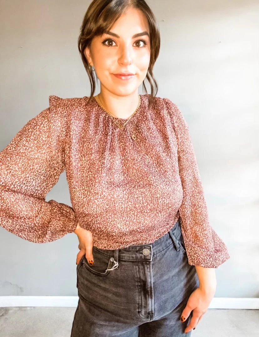 Buisness in the front, PARTY in the back!! The Stubborn Love top is the prettiest mauve shade, perfect for transitoning seasons. The cut of this top is so bubbly and flattering with the most delicate back details.Wear with mom jeans and a black bootie for an edgier look.