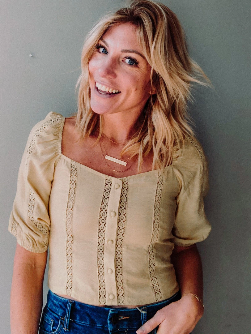 The Sweet Siren Top is a beautiful bright yellow slightly cropped top with lace/crochet details and a button front. We love the slightly puffed sleeve of this chic, spring-time staple. Pair it with your favorite denim, cutoffs or under overalls for a super feminine, boho inspired look we love!!!