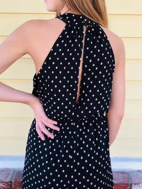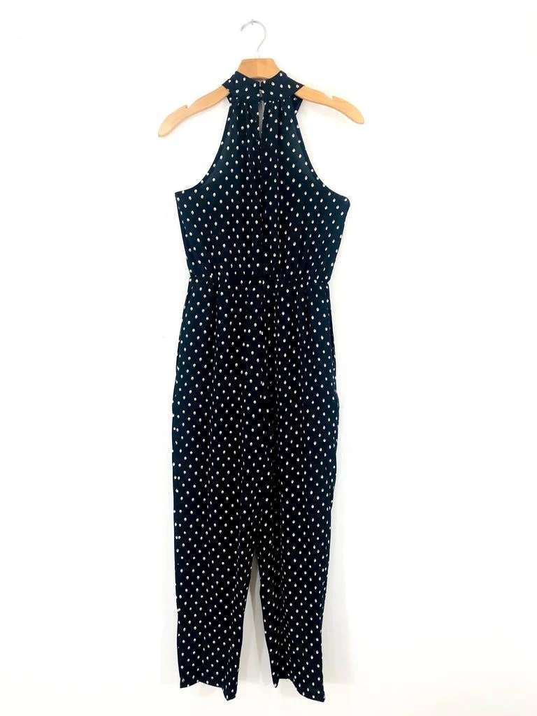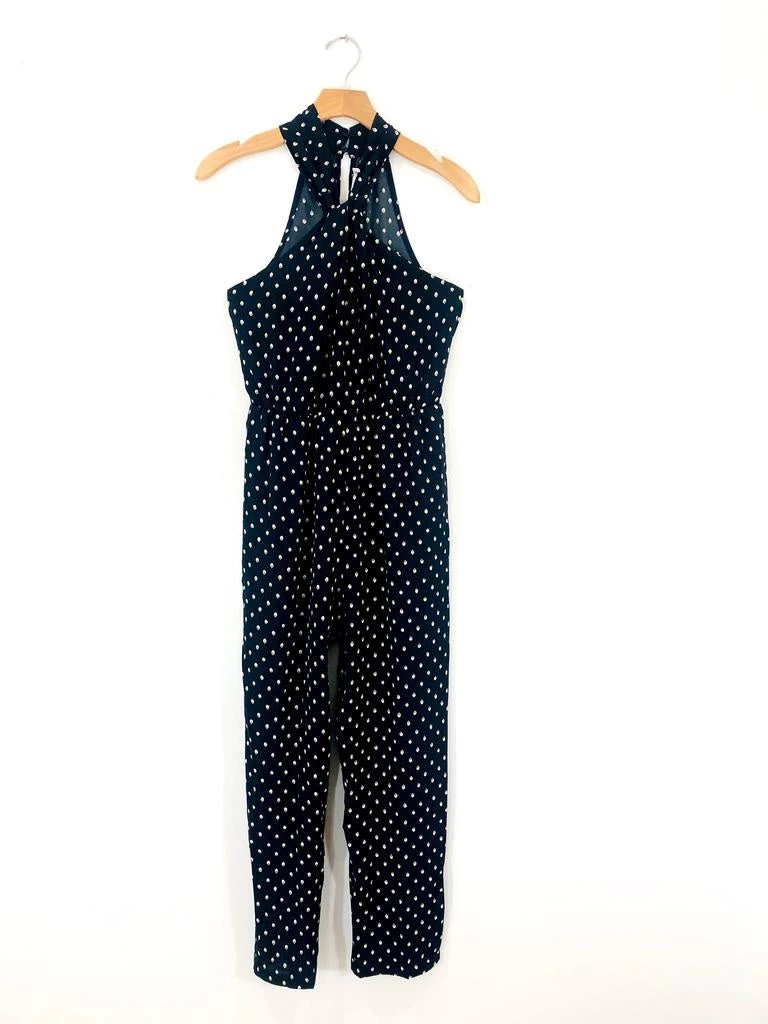This jumpsuit’s got it all! A twist front halter neckline with blousy top and bottom that hits right at the ankle. An elastic waist makes it such an easy fit and keyhole details at the back keep it fun and flirty. Did we mention it has pockets? Model wears a SM.