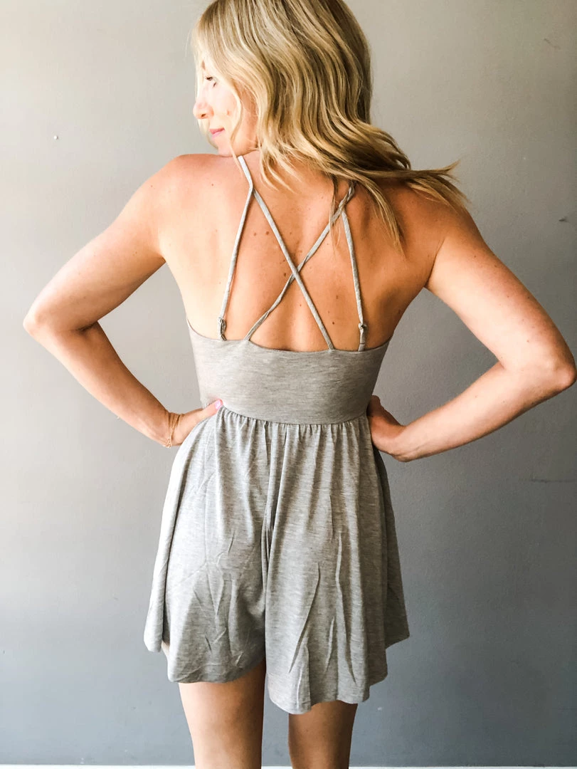 A shorts romper perfect for the warm summer days ahead. We love the loose fitting lower with adjustable spaghetti straps and back detail. Easy to toss on and take to the beach or a backyard bbq.