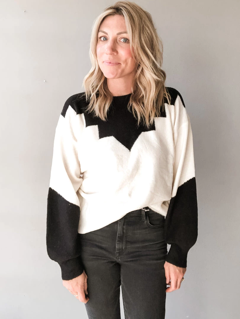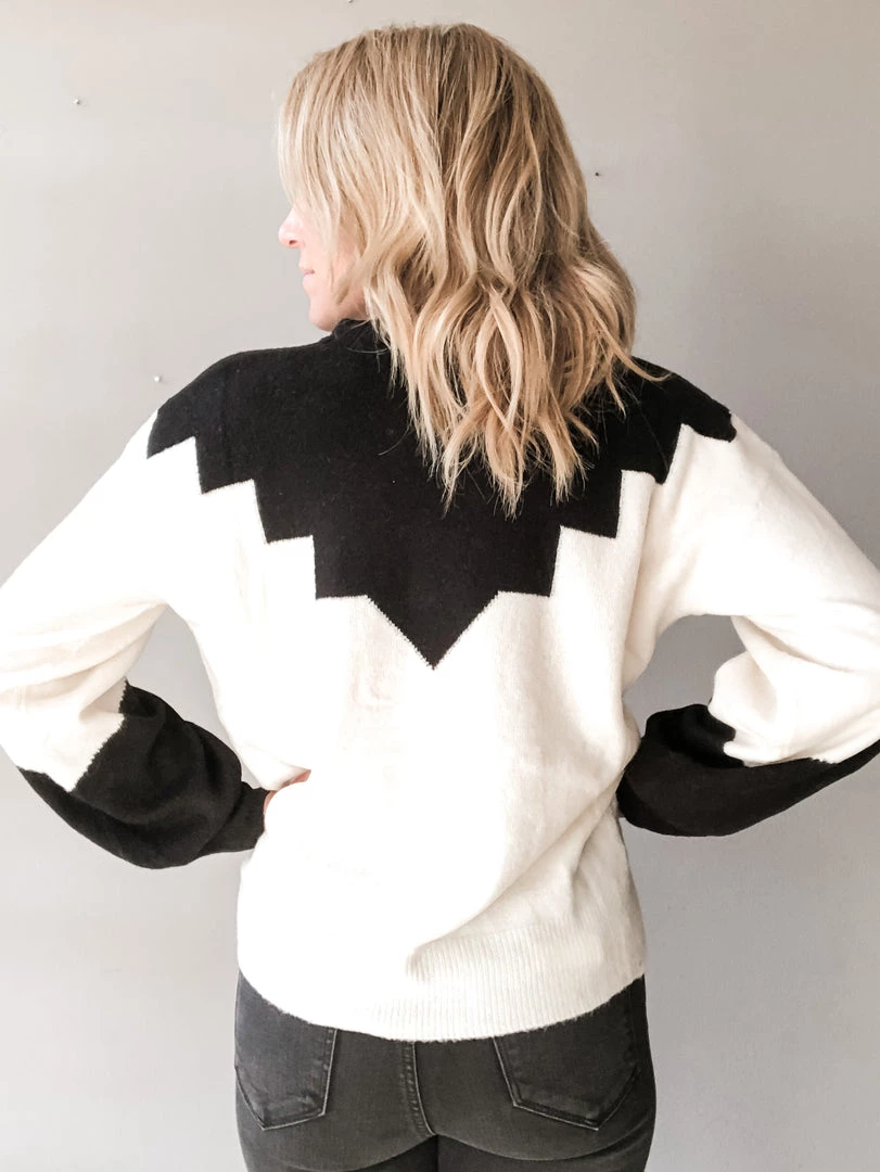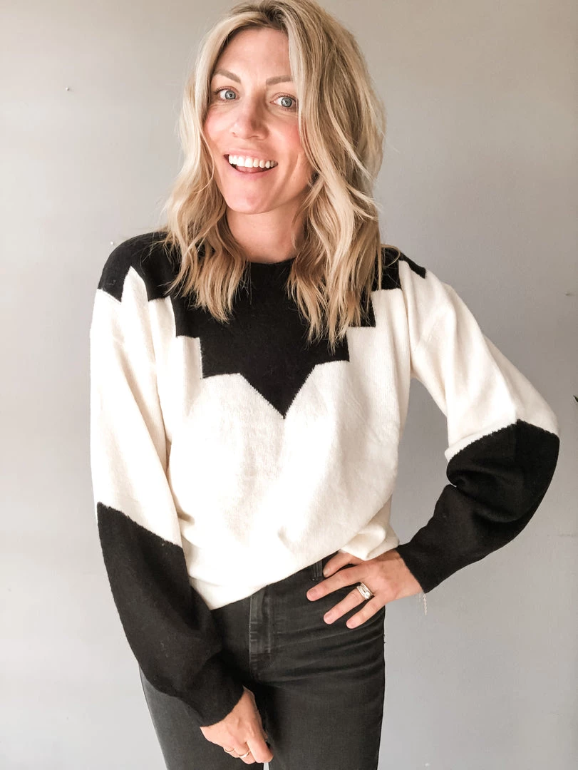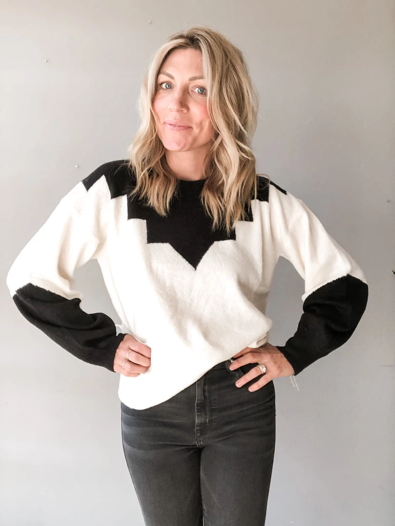 A lightweight long sleeve pullover in a cozy ivory and black colorway that will go with any and all denim! We love the contrasting details of this pullover, with two tone sleeve and design on the neck and shoulders. Wear it tucked in or out, the choice is up to you babe! You can’t go wrong either way!