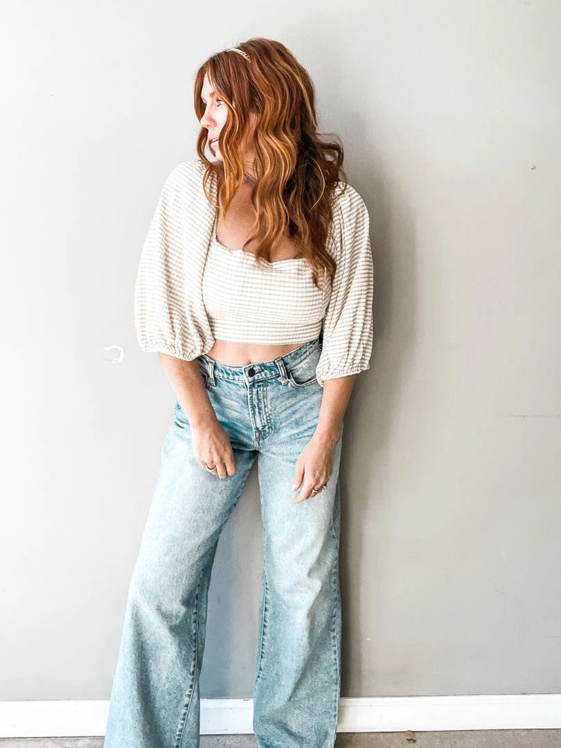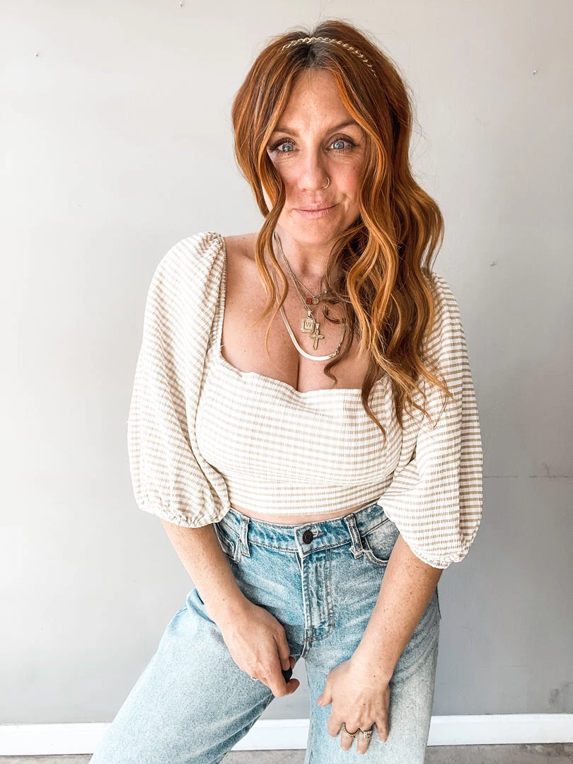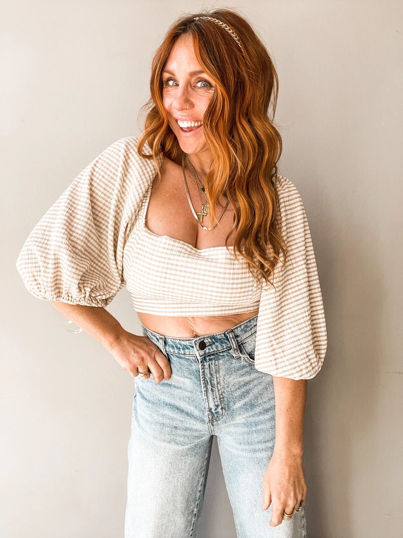 The Hearts Content top is an open back crop with double ties at the back for a flirty look we love! Elasticated shoulders and wrists keep this fun top in place. With a square neckline and fixed waist this gingham top will be a classic each Spring and Summer season.