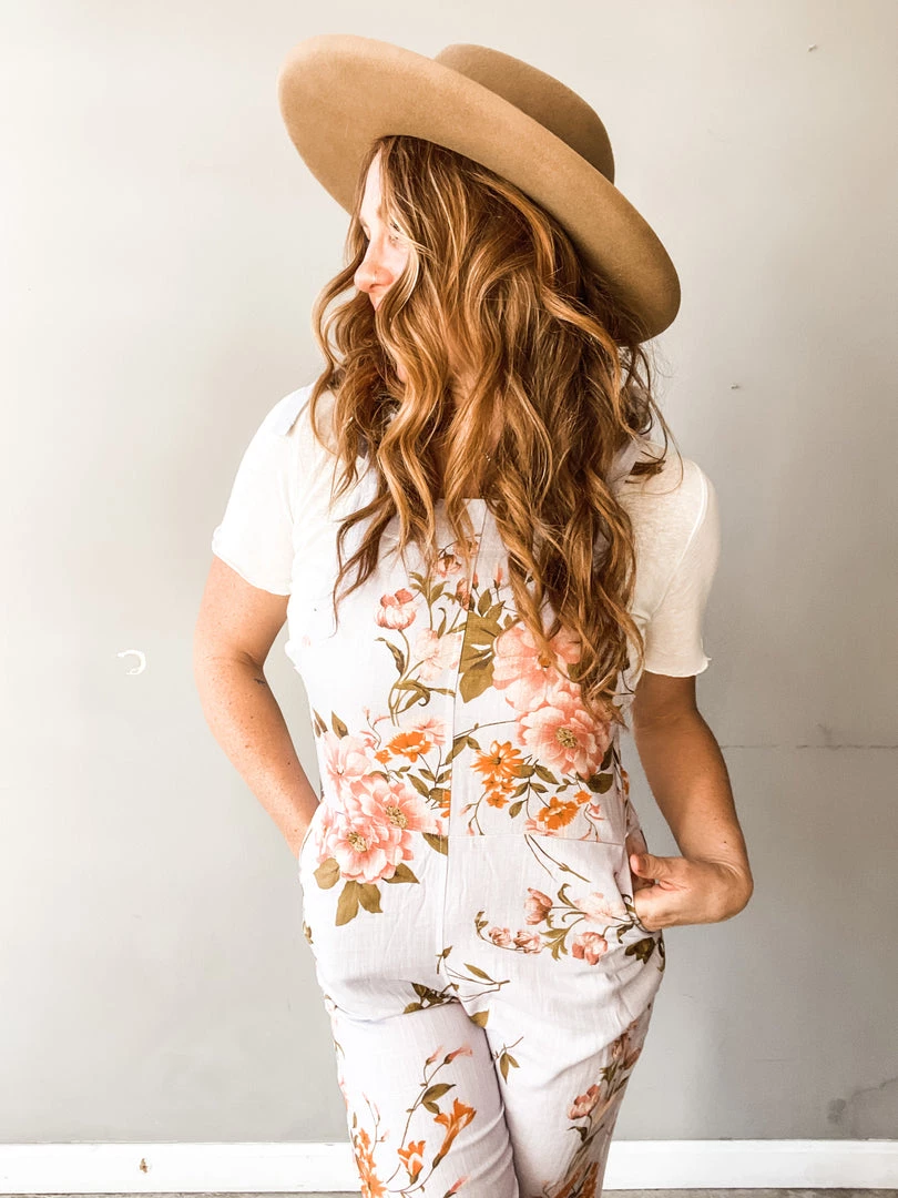 A restock of our bright all over floral print linen overall now in a soft lavender color way. This overall is cropped with side pockets, adjustable shoulder ties and side button detail. Layer over a tank and pair with sneakers all Spring and Summer long or toss over a swimsuit and hit the pool. Lightweight and a fun floral print for year round wear.
