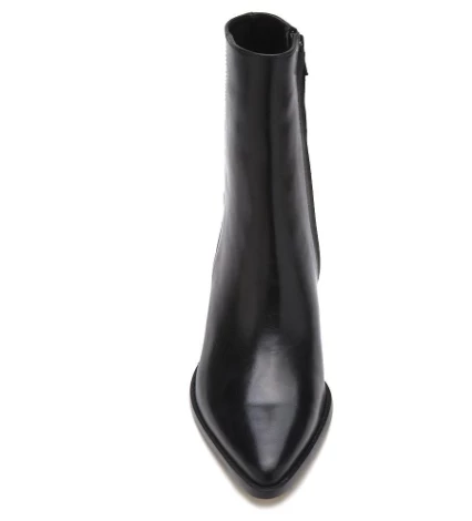 Upper Leather, padded insole, leather stacked heel and zipper closure.