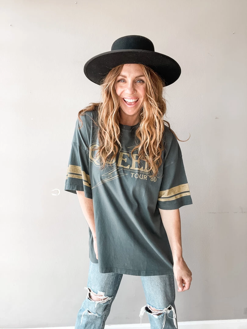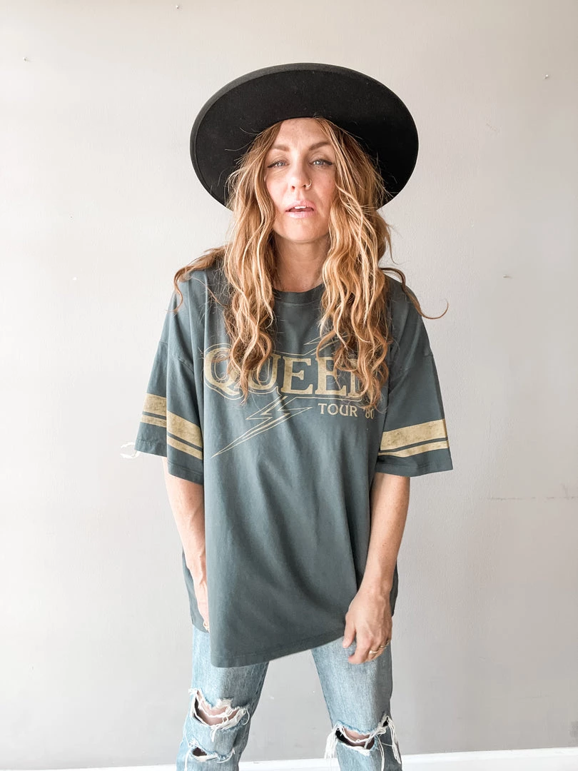 The Daydream Queen Tee is kind of as good as it gets guys. Oversized to perfection, killer graphic, and so cute with denim cutoffs, jeans, tucked into your fav high waisted denim, or worn over your bikini all summer long.