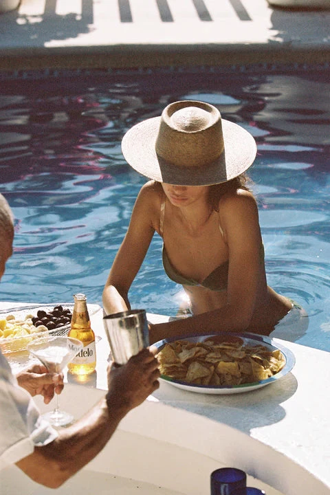 Handmade by artisans in Mexico, these new 100% baked palm leaf hats are perfect for the Summer soiree of your choice. Featuring a boater crown and tightly woven pressed palm, this hat is made for Summer.