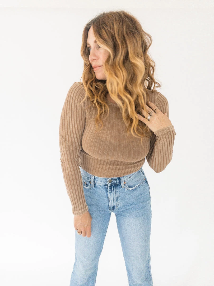 We’ll never say no to an open back moment. The Cosima Long Sleeve is a mineral washed ribbed top that’s fitted throughout with a cropped fit and open back details. It’s the perfect piece to buy now and rock all Fall and Winter long. The keyhole back features a rectangular brass fastener that we just can’t get enough and comes in a perfect-for-fall toasted sugar color way.