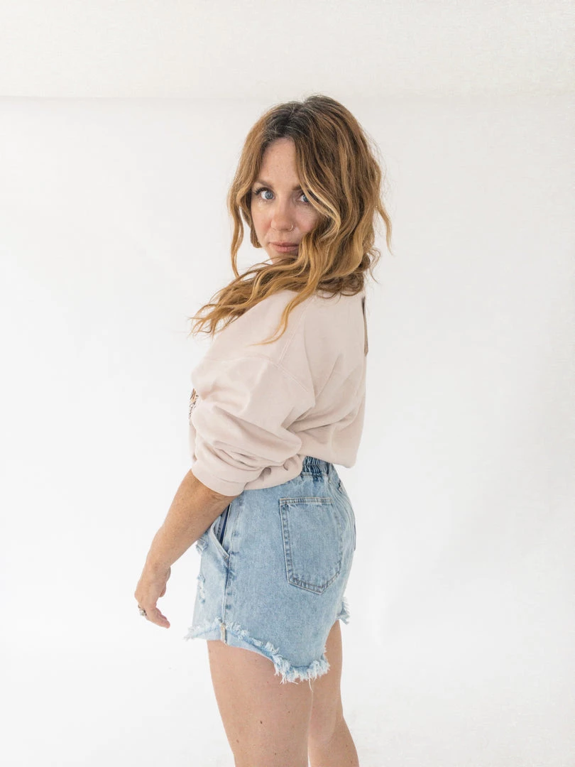 A sweatshirt as feisty as you. The Easy Tiger Sweatshirt graphic speaks to your wild side while the pale pink color is a reminder of your soft femininity. With a gentle relaxed fit, it’s perfect for both dressing down with leggings or dressing up with leather pants and heels. You’re a girl who can do both and need a sweatshirt that shows that.