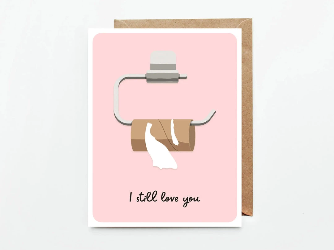 Love makes us all a little crazy, right? Let them know you still love them with this silly card. These festive cards are made from extra thick card stock with a matte finish, are paired with a kraft brown envelope and are sealed in a clear bag. Blank inside.