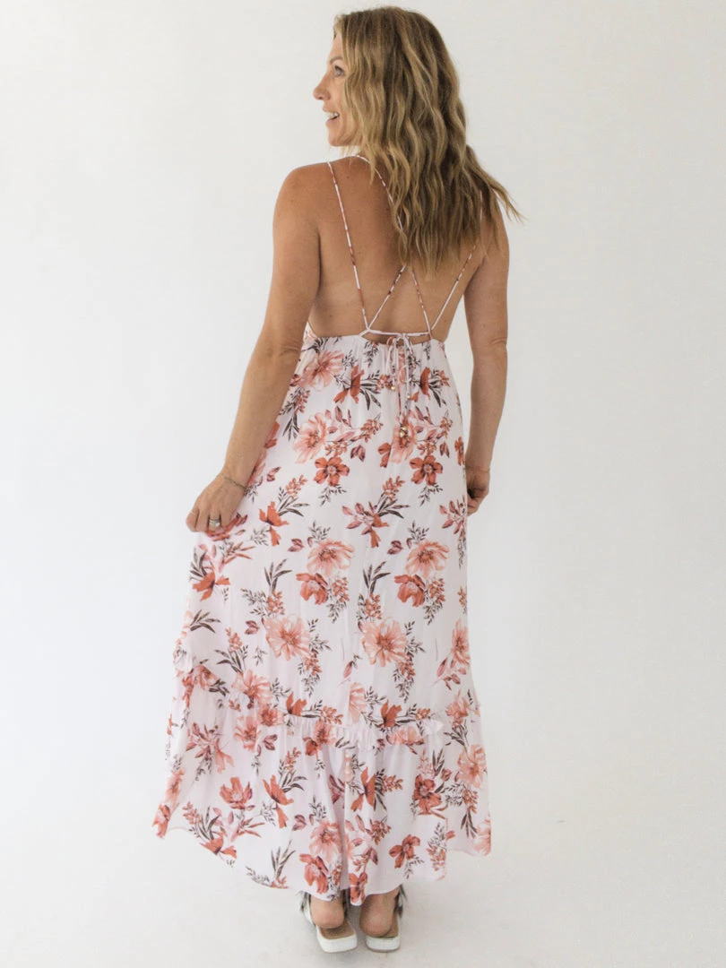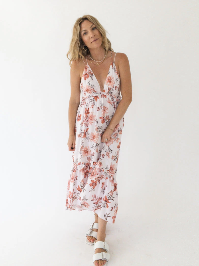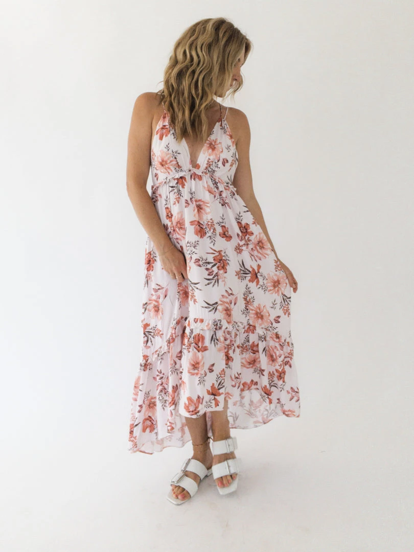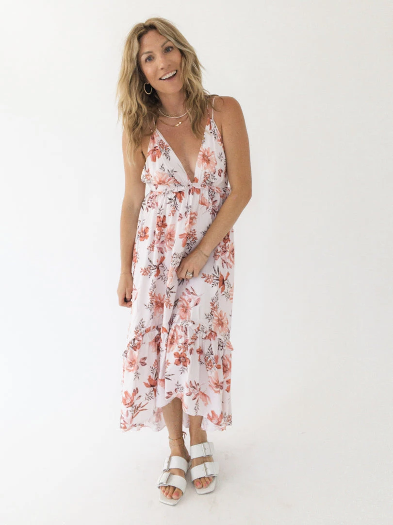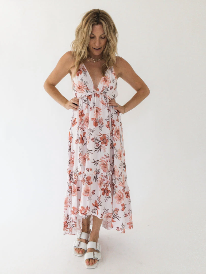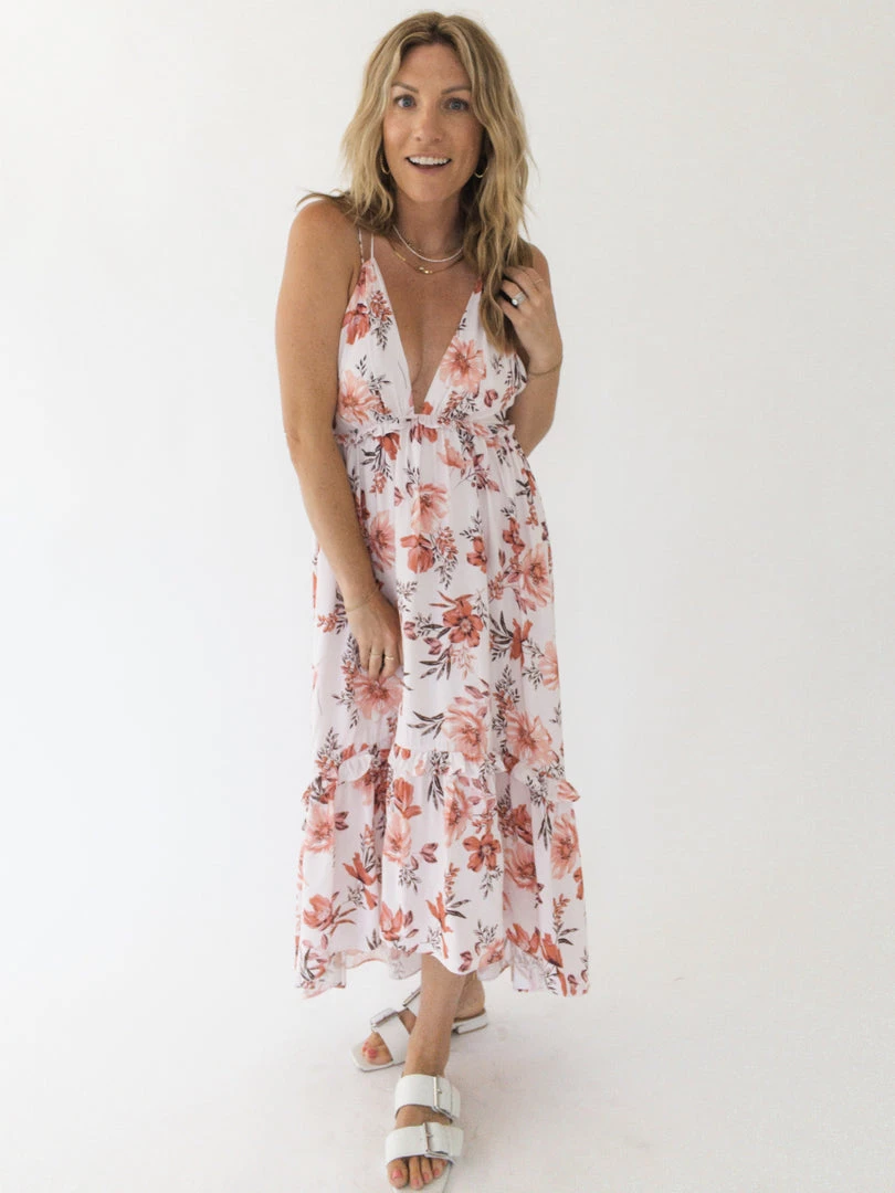 The Gisele Maxi Dress is the sweetest feminine dress you’ll put on all summer long! It has adjustable shoulder straps that create an open back detail, a tiered skirt that’s lined, a side zipper, and a high-low hemline. We love the pinks in the floral print. Everything about this little number feels romantic!