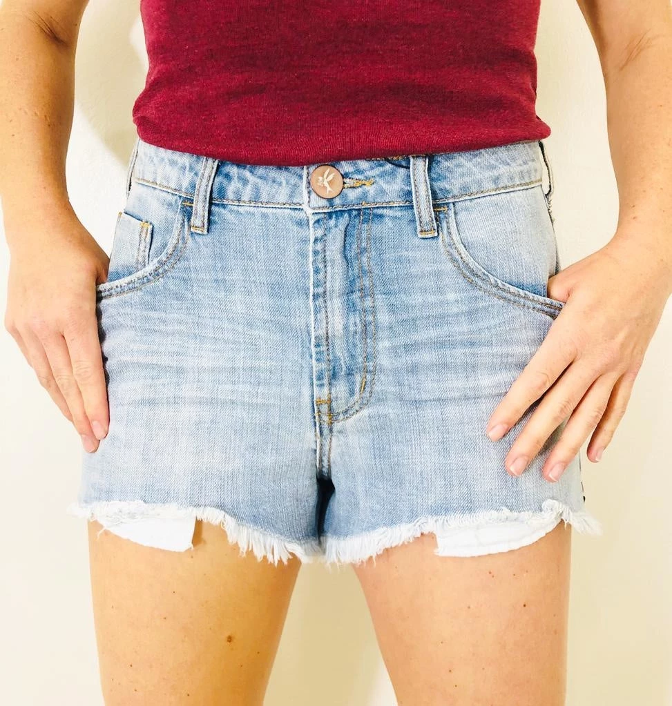 A mid-rise, relaxed fit denim short with button closure and zipper fly. 100% cotton. Side Seam: 29.5cm Back Length: 38cm *specs based on a size 26. Machine wash cold and tumble dry to maintian fit and feel. (Model wearing size 25)