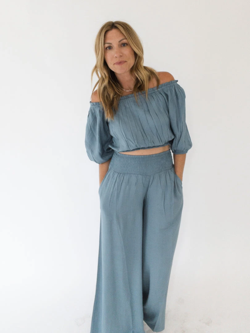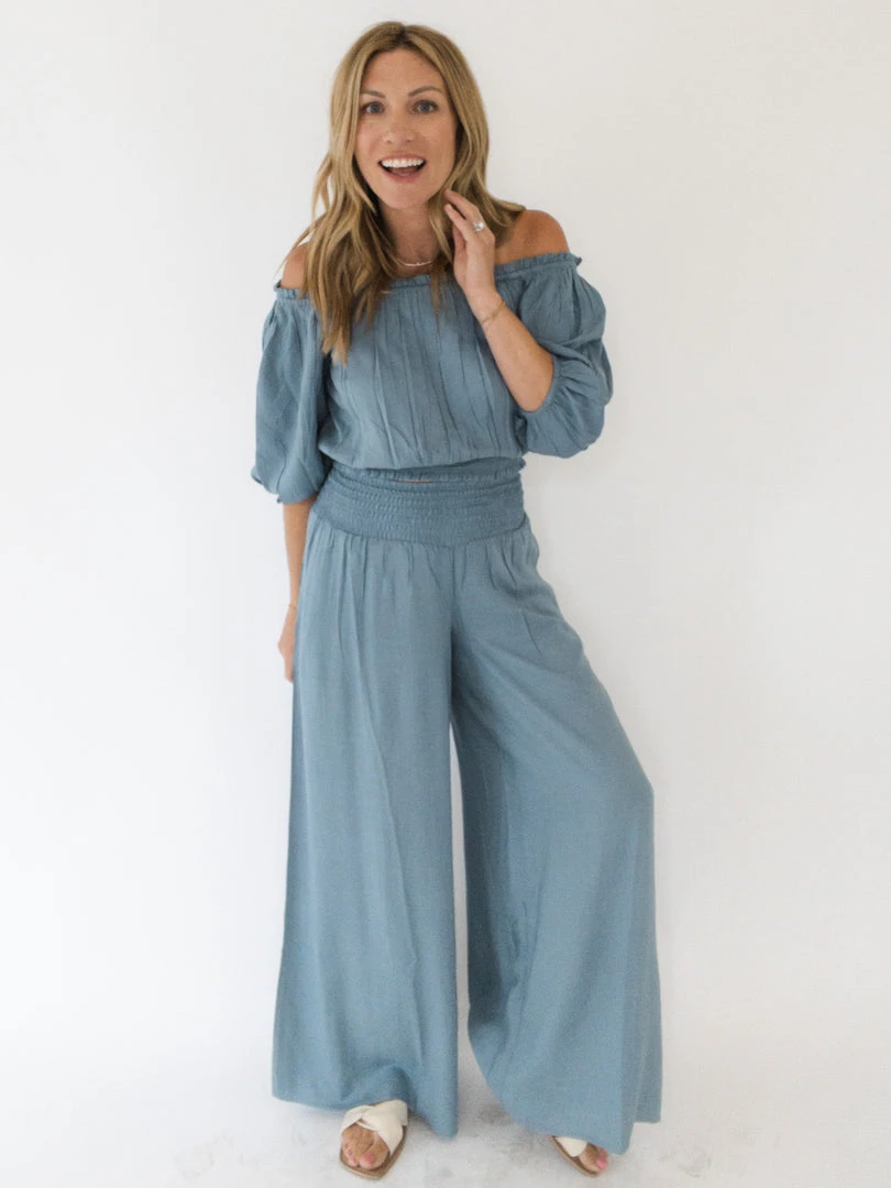 The Palo Alto Pant is a wide leg pant with a high smocked waist, side pockets and breezy fit. A fun pant for vacationing or hanging poolside, pair with a solid top, graphic tee or complete the set with the matching Riviera Top (sold separately). Any way you wear them, these versatile pants will be a fun and flattering staple.