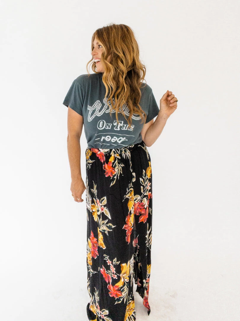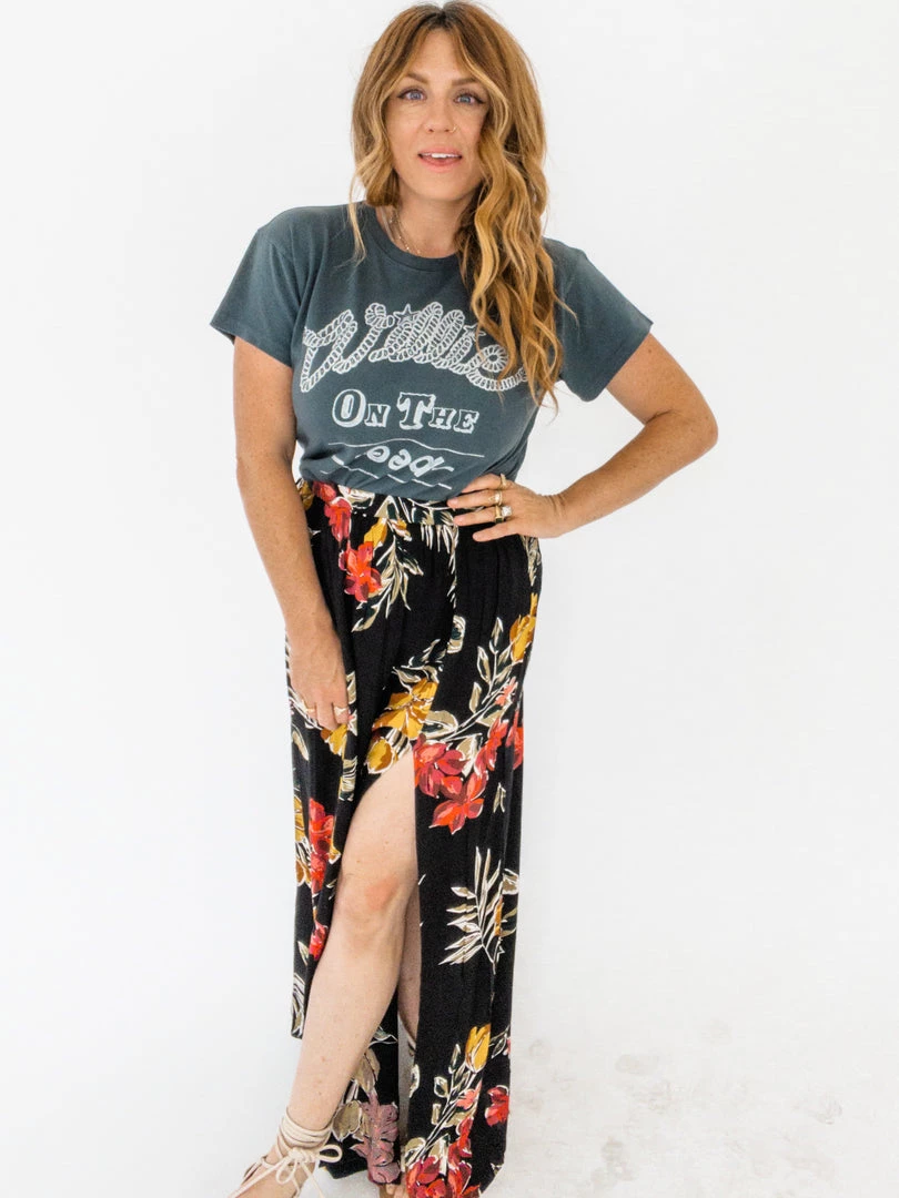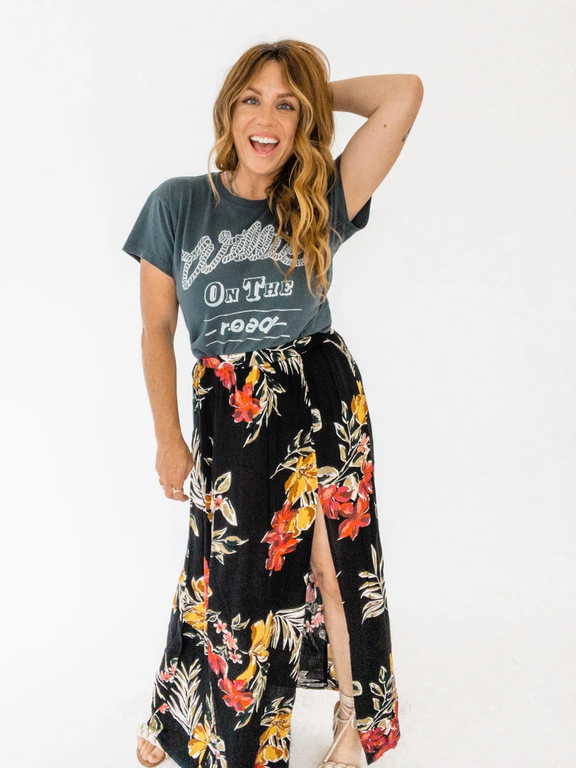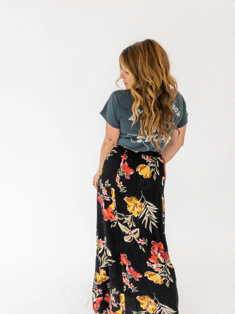 A maxi skirt never let’s us down and the Winward Skirt is sure to be our next favorite!! This maxi has a classic black base with an all-over floral print that pairs so well with so much and features just the flirtiest of side slits. A straight silhouette with elasticated back waistband. Grab her quick!!