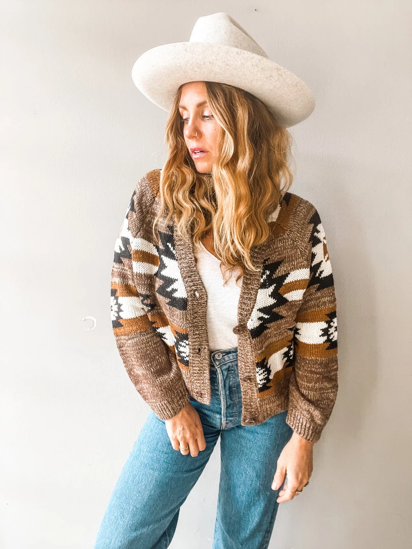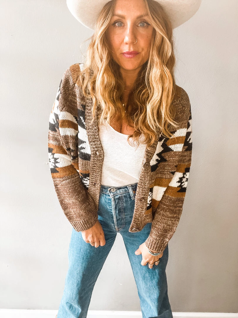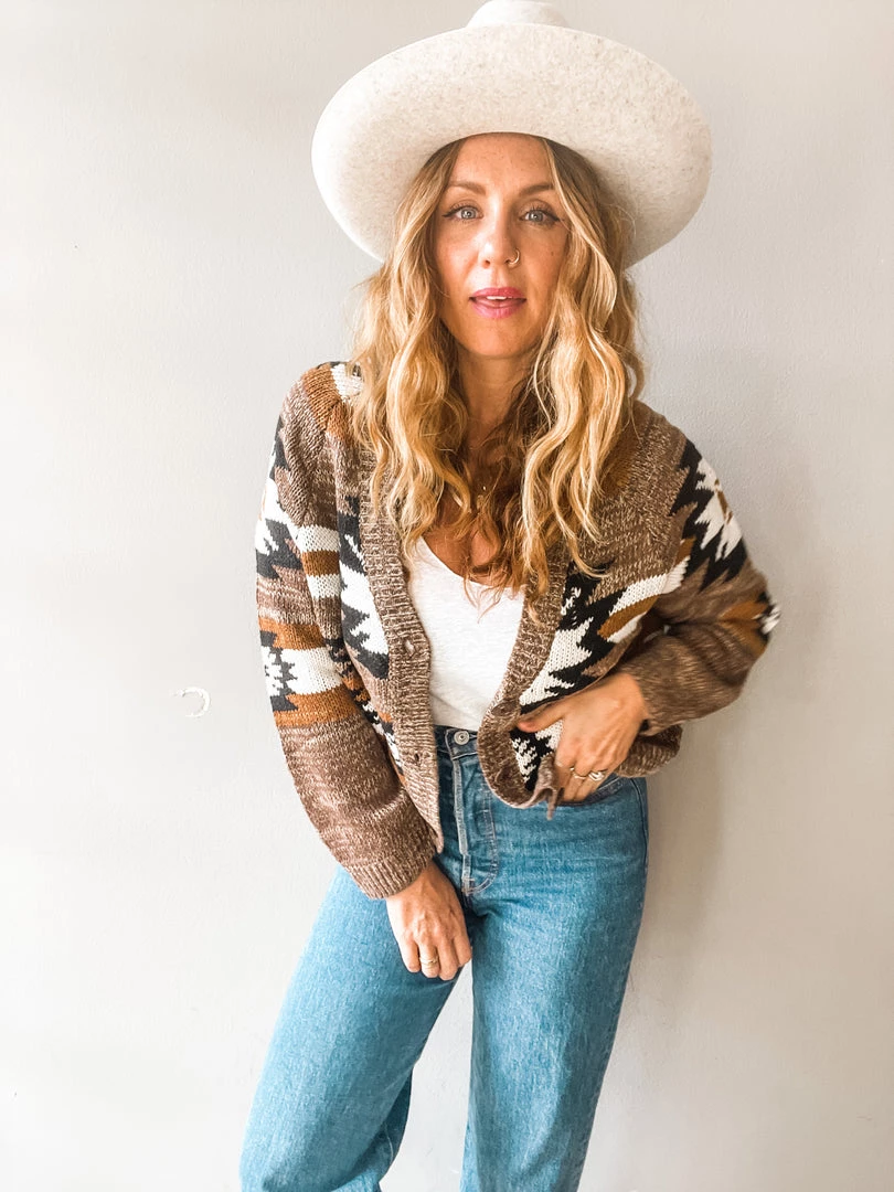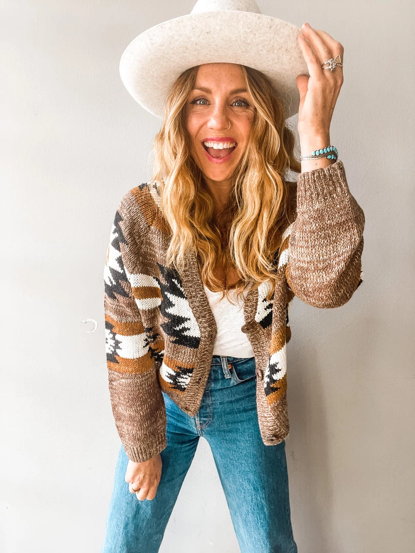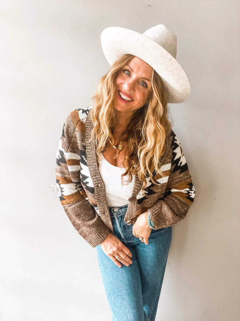 It’s like your your favorite grandpa style cardigan but even better!! The perfect length to pair with high rise jeans and a classic tank or tossed over a midi dress. This stunning cardigan comes in the yummiest neutral tones with a killer geometric design throughout. Ultra cozy with an easy fit and three button front. The type of cable knit cardi we love to wear over and over. Run don’t walk to grab thee Homestead Cardigan!!