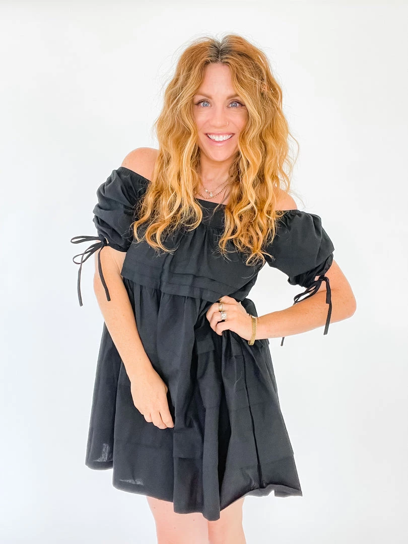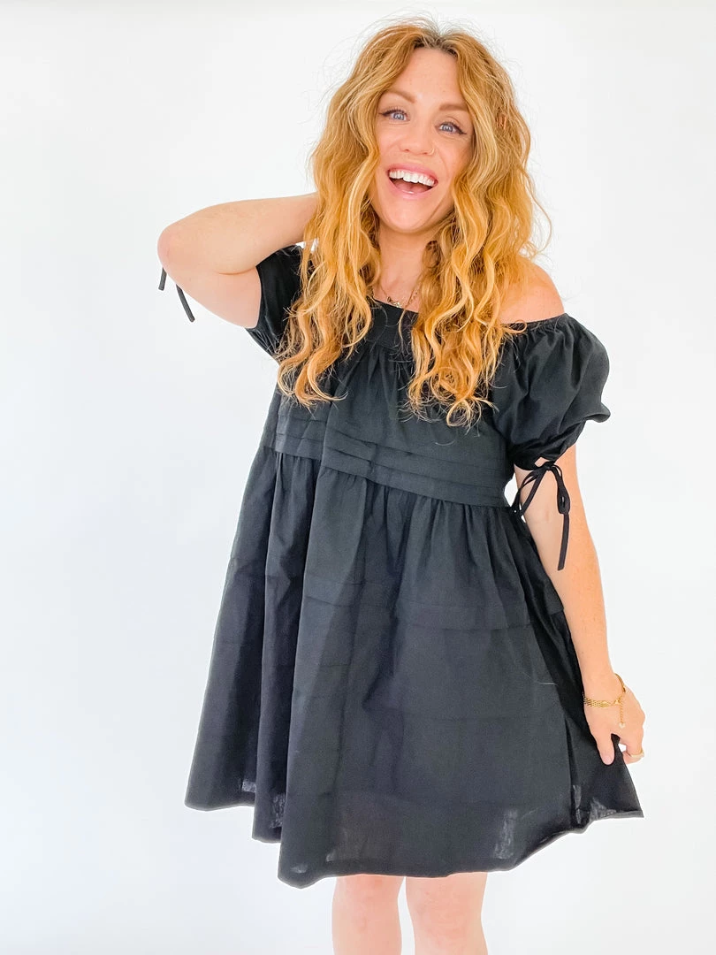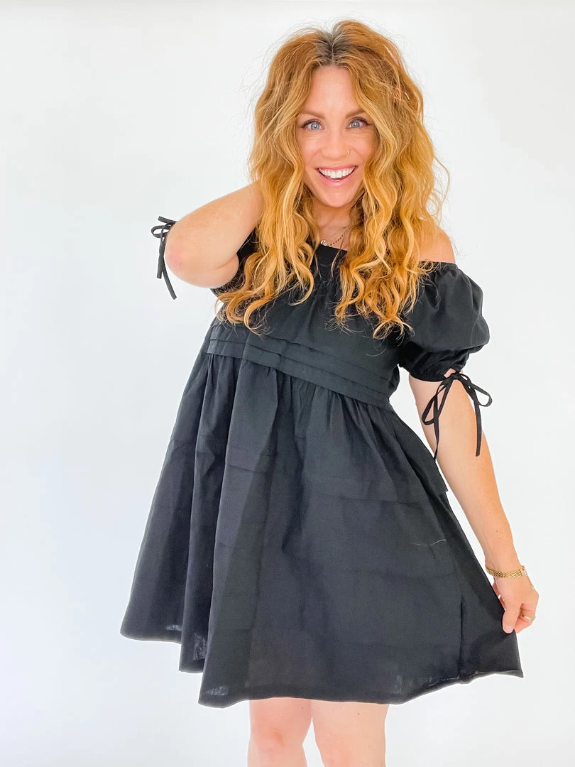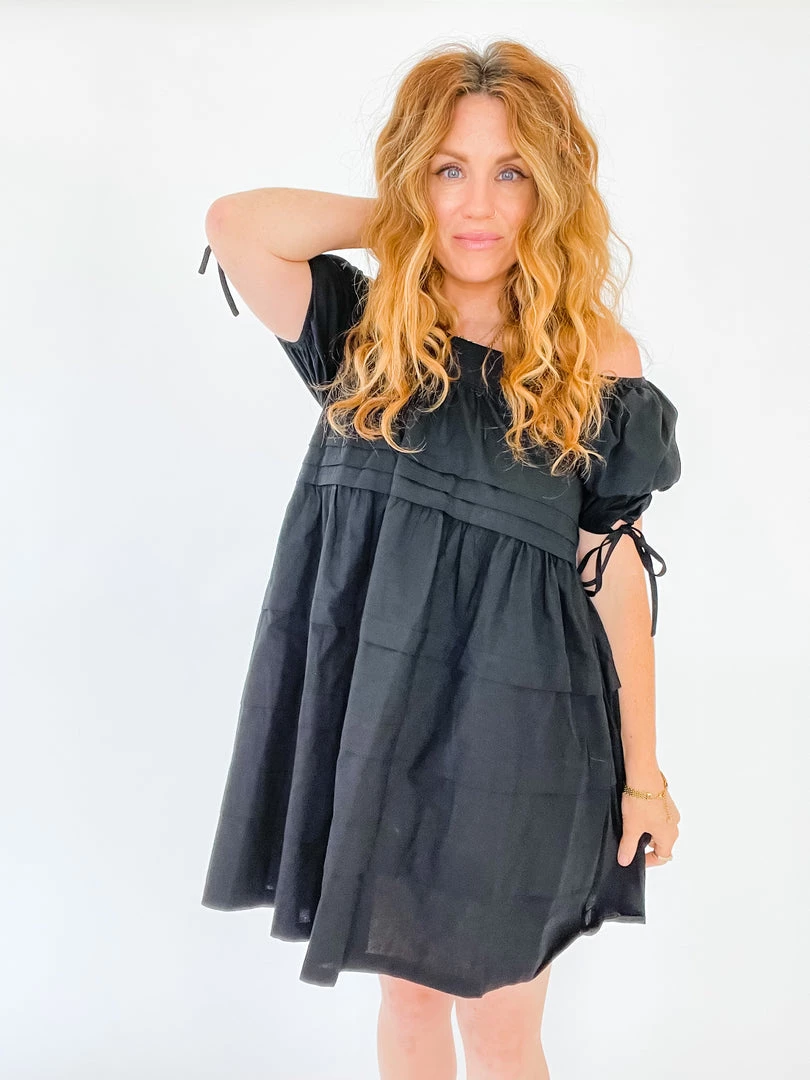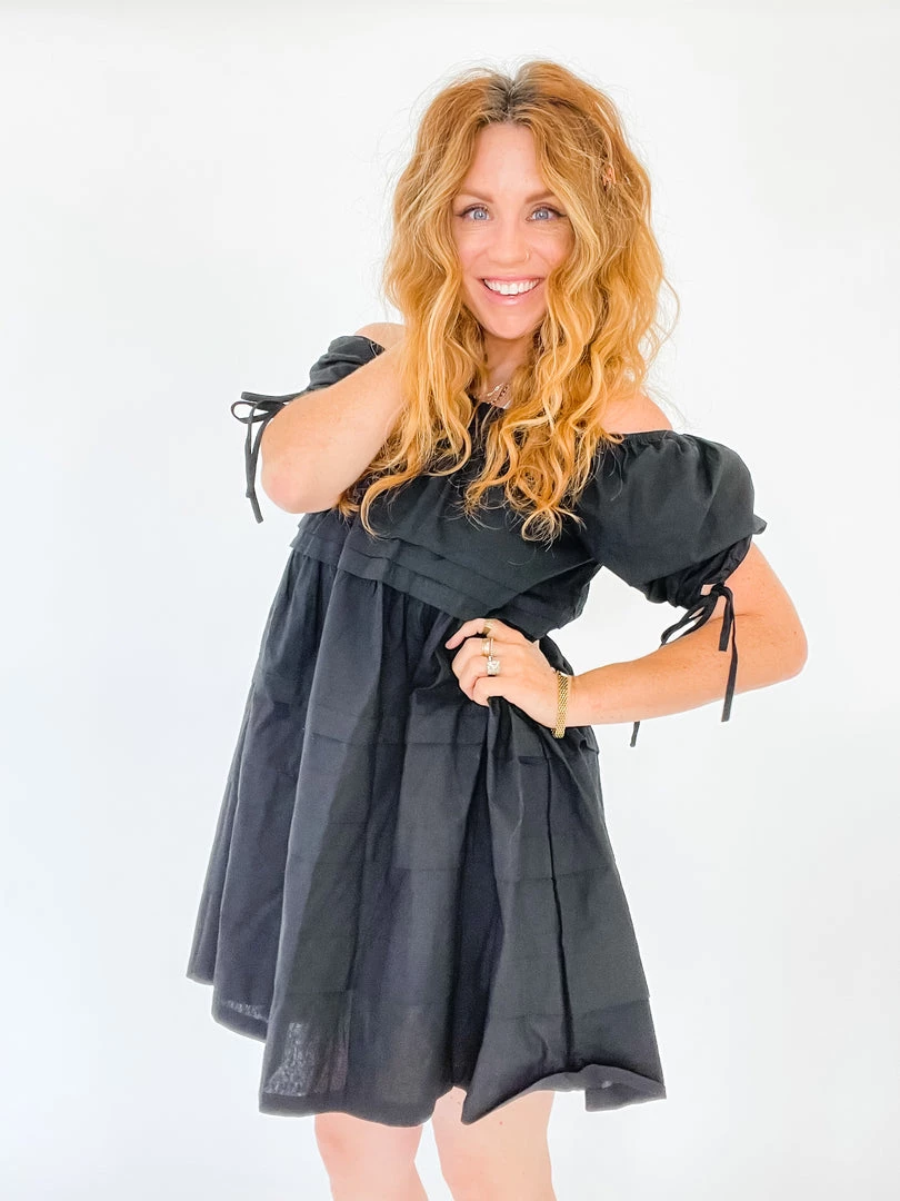A classic little black dress that won’t ever go out of style. The Adored Babydoll dress features a straight neckline that can be worn off the shoulder, puffed sleeves with a tie detail, and a flowy skirt. Easy breezy for summer, but also could be a transitional piece with some tall boots.