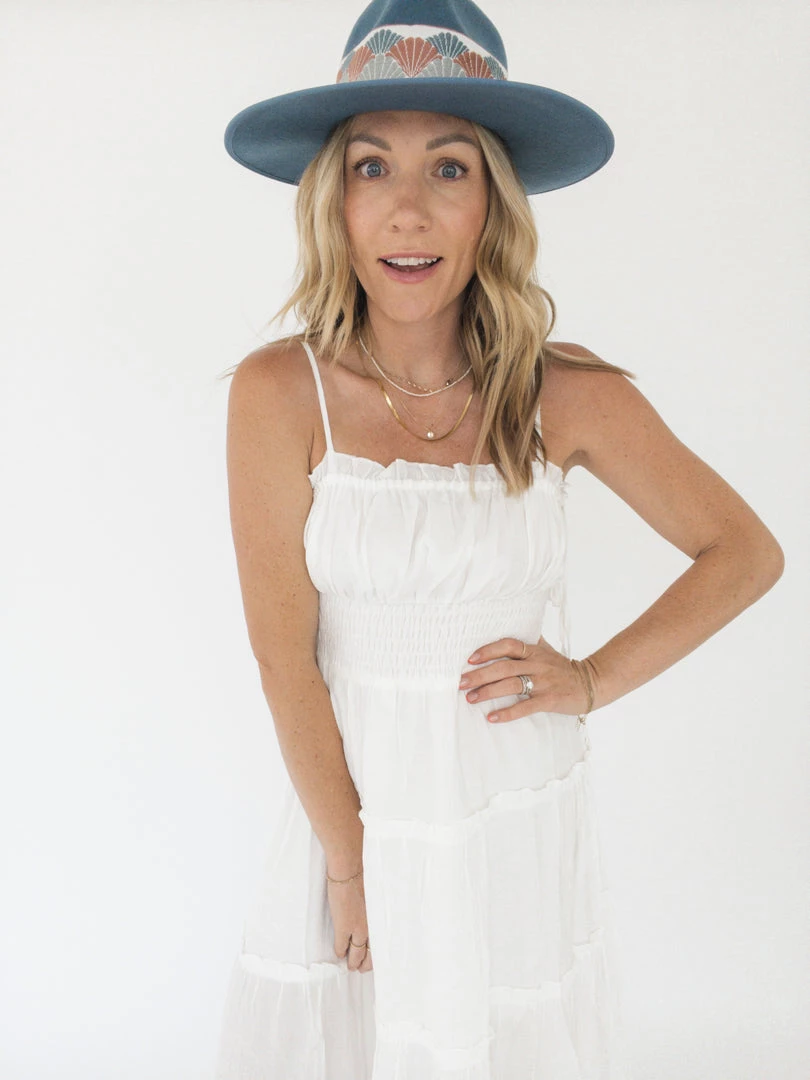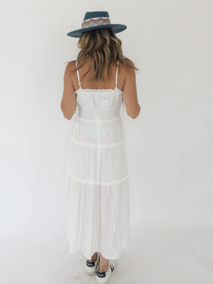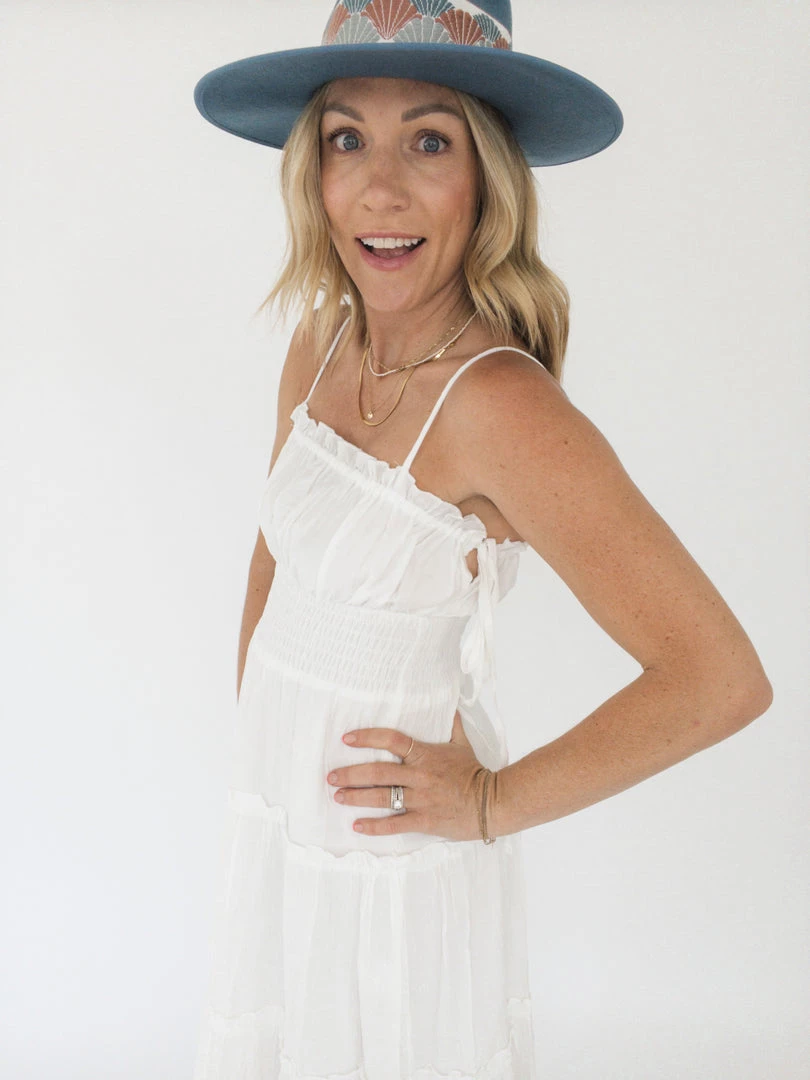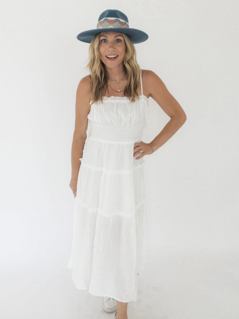 The Moving On Tiered Midi Dress is a light weight, gauzey midi that is just as easy and comfy to wear as it is cute! We love the tiered skirt as well as the smocked waistline directly under the bust with adjustable shoulder straps and tie side detail. The kind of summer dress to throw on and go!!!