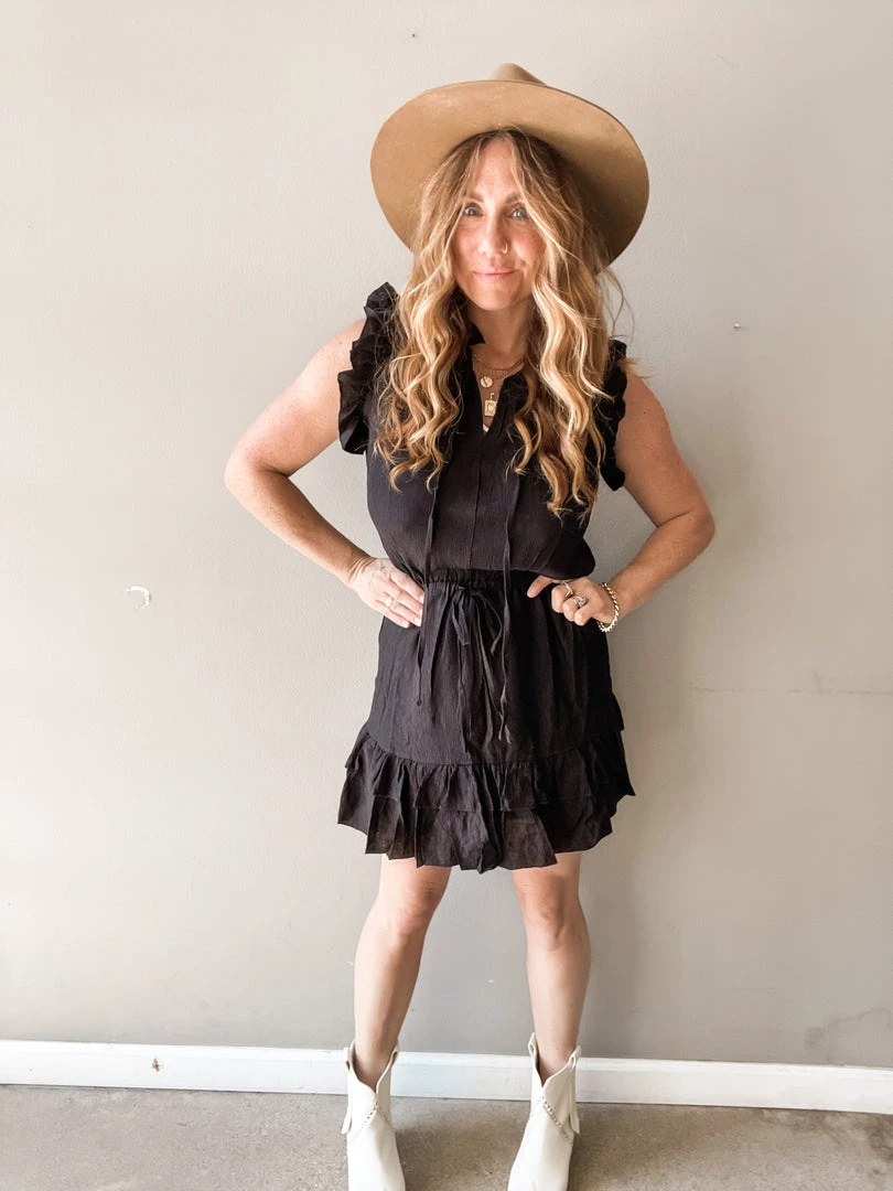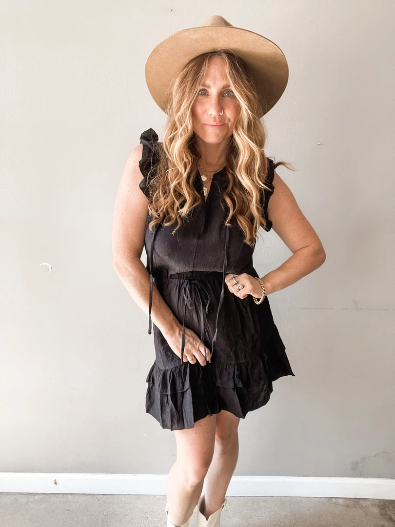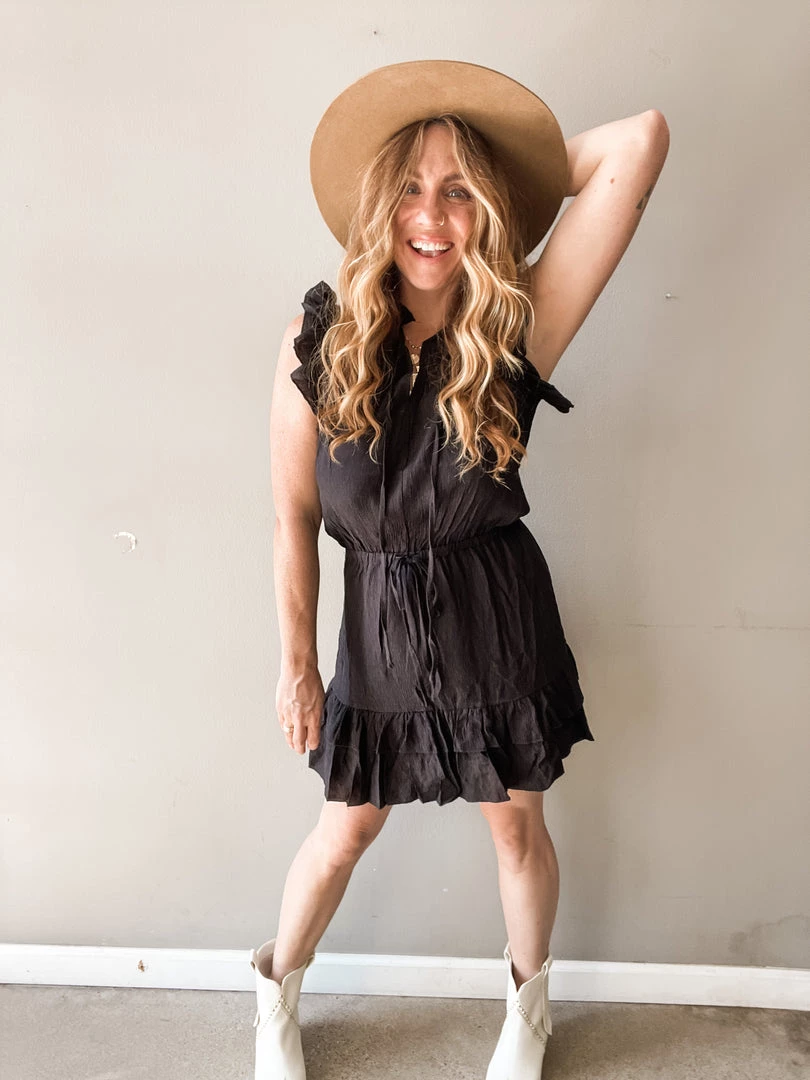 The Every Chance Dress is a sweet and simple staple with all the fixins!!! We love the little sleeveless ruffle detail, short cut and drawstring waistline on this great fitting piece!!! So great as a casual piece with sneakers or sandals or dressed up with fun boots and heels!!!