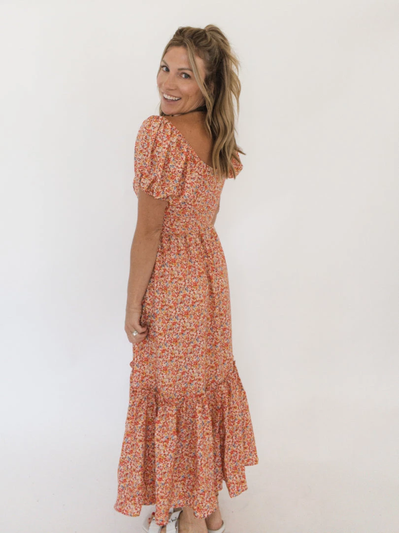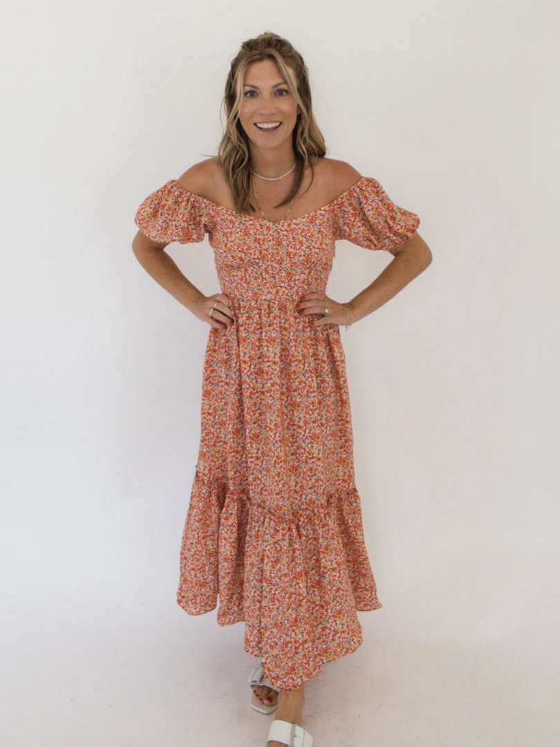 A bestseller is back in a new colorway! The floral Crushing On You Maxi Dress can be worn on or off the shoulder, has elastic bands that create bubble sleeves, is slightly fitted around the ribs, and has a ruffle panel at the bottom of the skirt. It’s lined throughout the bust and can easily be dressed up or down. We love it paired with the Moxie Sandal for a casual look.
