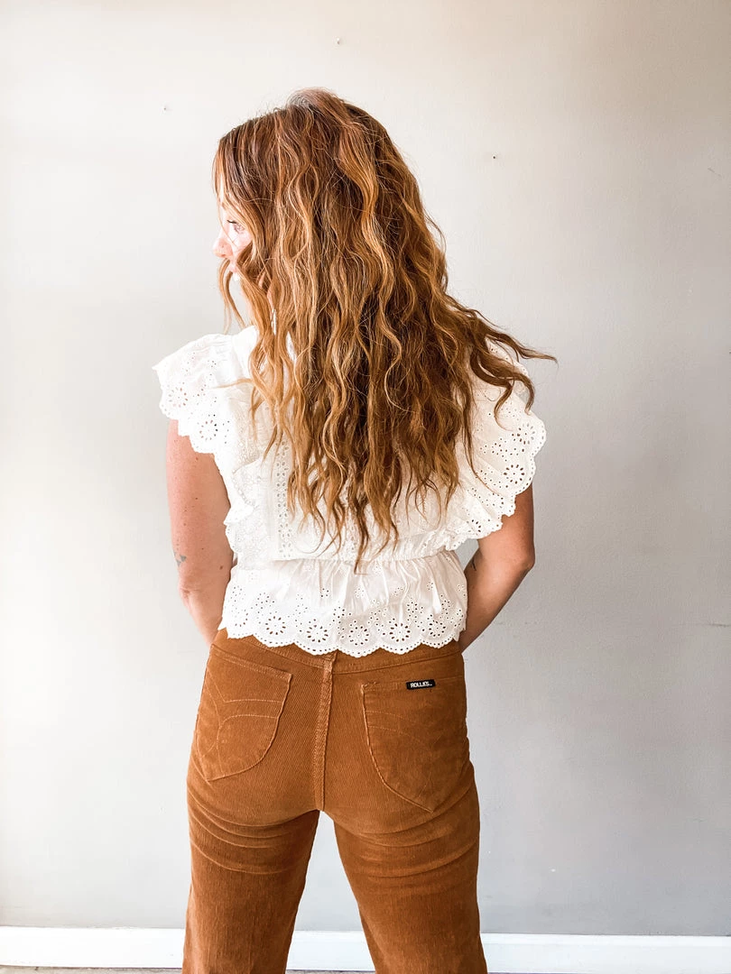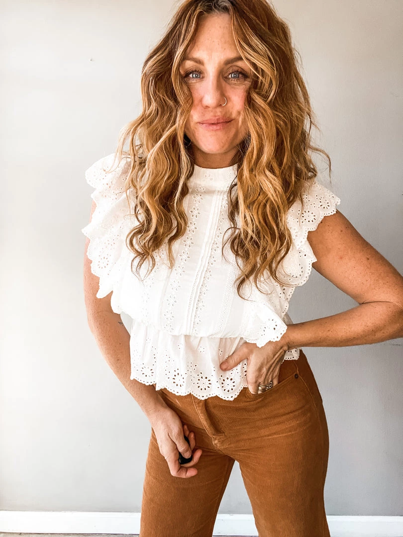 YES!! MA’AM!! This is an elastic cinched waist with winsome ruffled shoulder sleeves, and a button backed closure. This gem piece will fit like a glove with your favorite pair of Levis or a summer floral skirt. Dress it up with some cute heels, or dress it down with some sneakers for a casual day out, and you’ll be lookin’ GOOD!!!