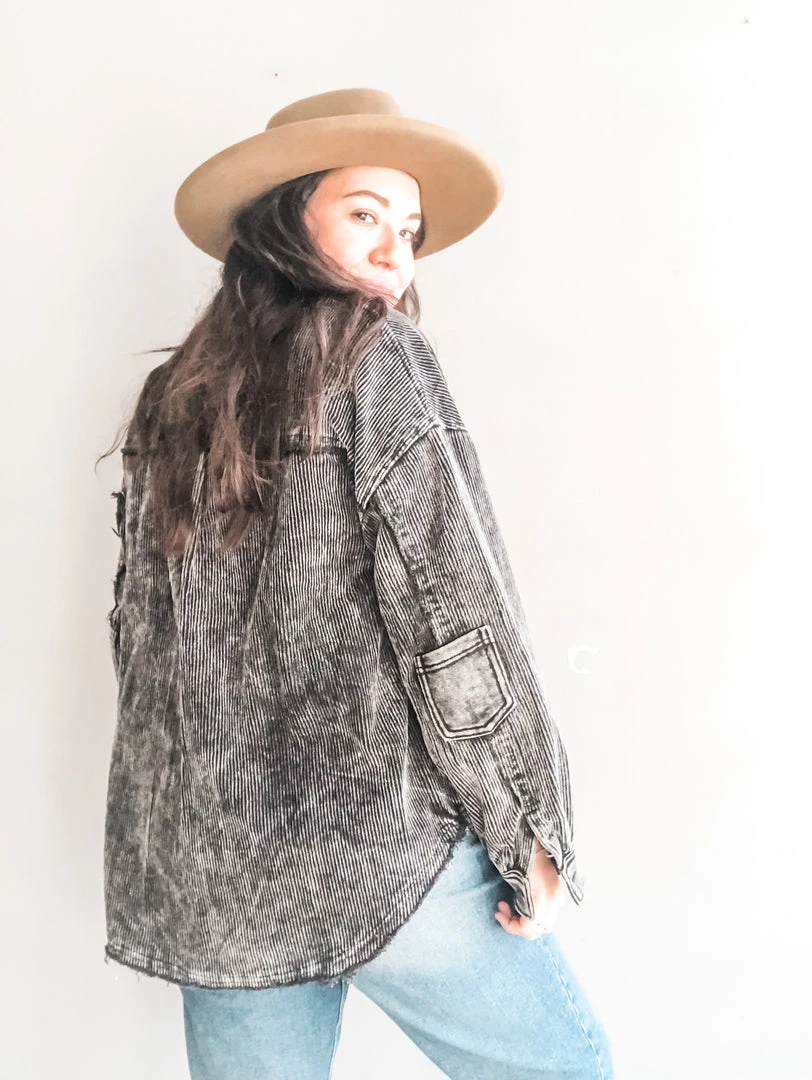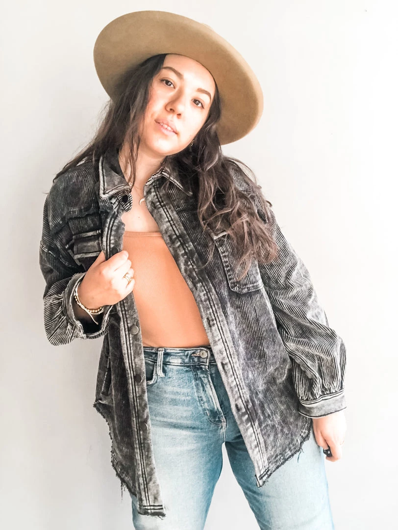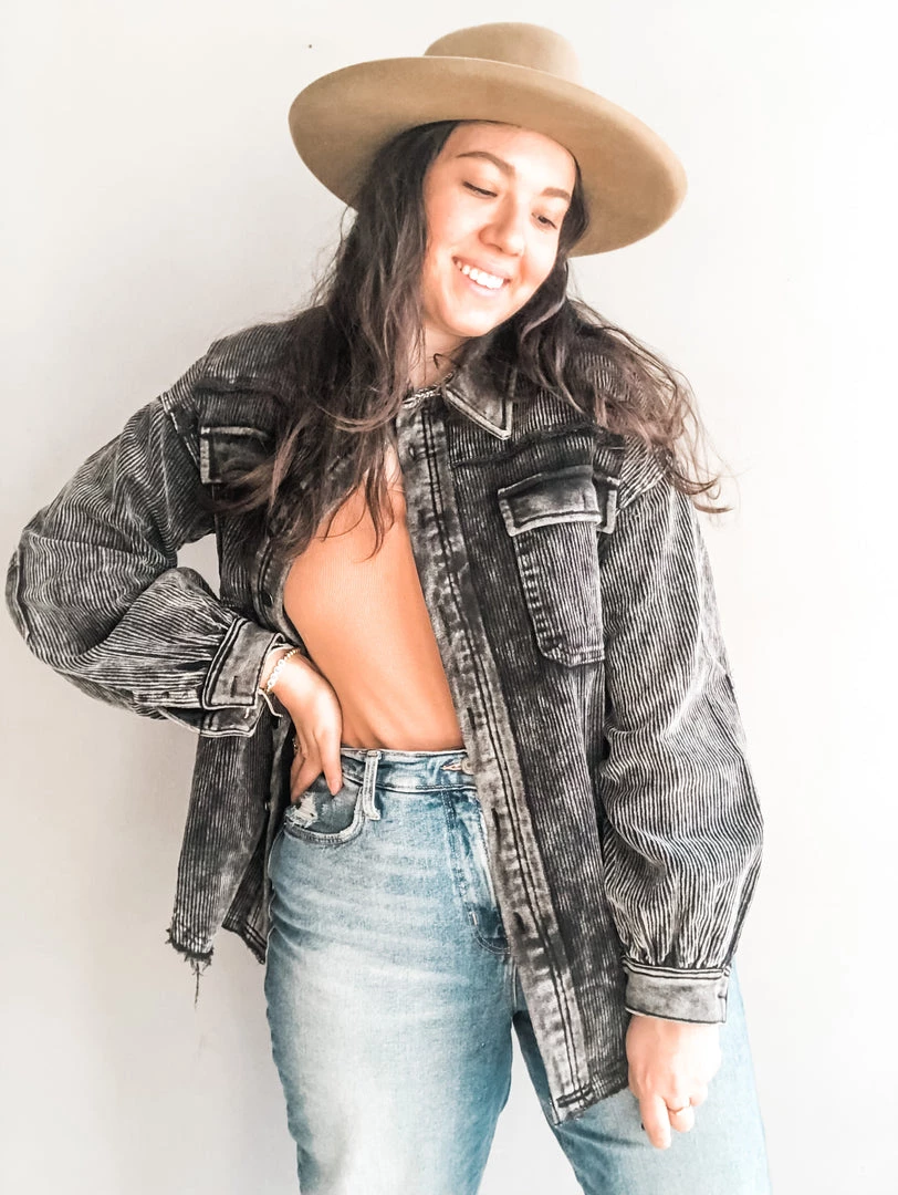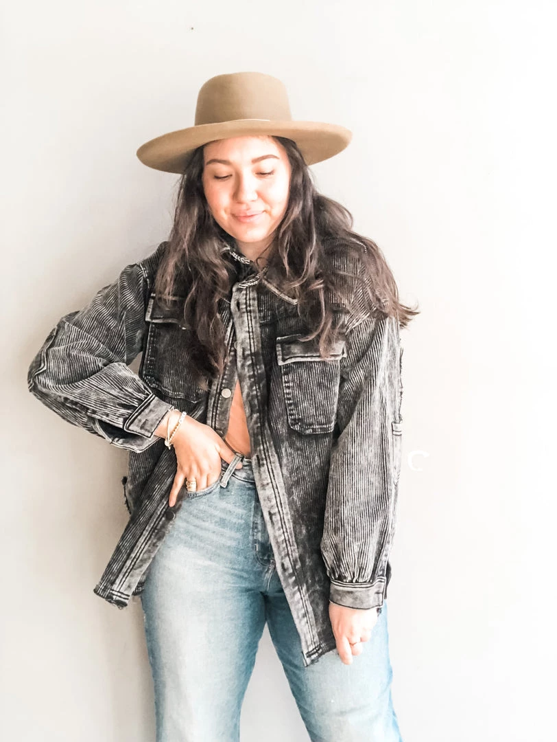 Let me tell you, I GASPED when I unpacked this one. The Jane Corduroy Shacket is so cute, so classic, and oh soooo soft. The super soft washed feel, the distressed raw hem, and the tiny pocket details on the sleeve are ticking ALL the boxes. You’re going to want to snag this one up quick.