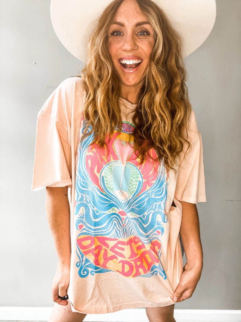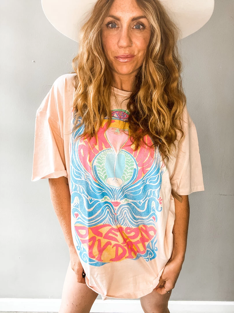 The Let’s Day Drink Oversized Tee is a super fun one size fits all tee/dress! We love this worn over your bikini, tucked into denim, or rocked with bike shorts! This fun pop of color and perfect summer graphic is a staple you willl LIVE in.