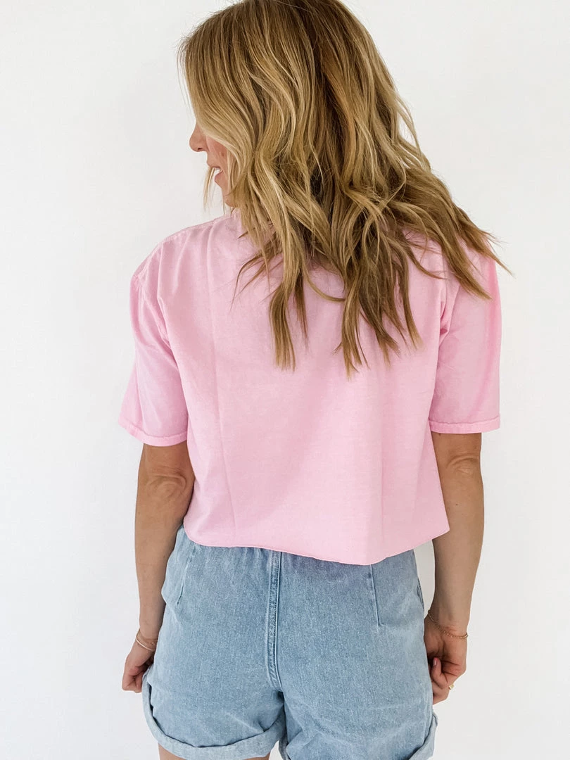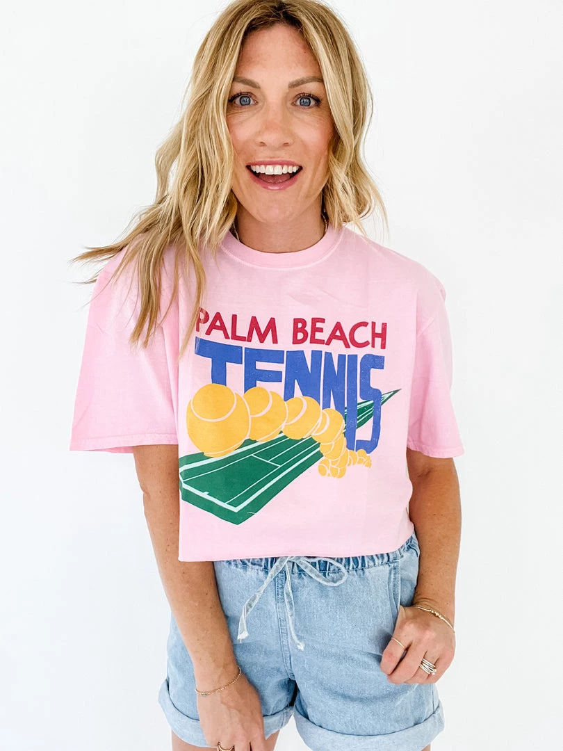 The Palm Beach Tennis Cropped Tee by Project Social T is made of 100% cotton jersey and features an oversized fit with a raw edge hem. The vibrant colors are a nod to vintage art in Southern Florida, sure to leave you feeling cute whether you’re saying “game, set, match” or “can you pass me my sunglasses?”