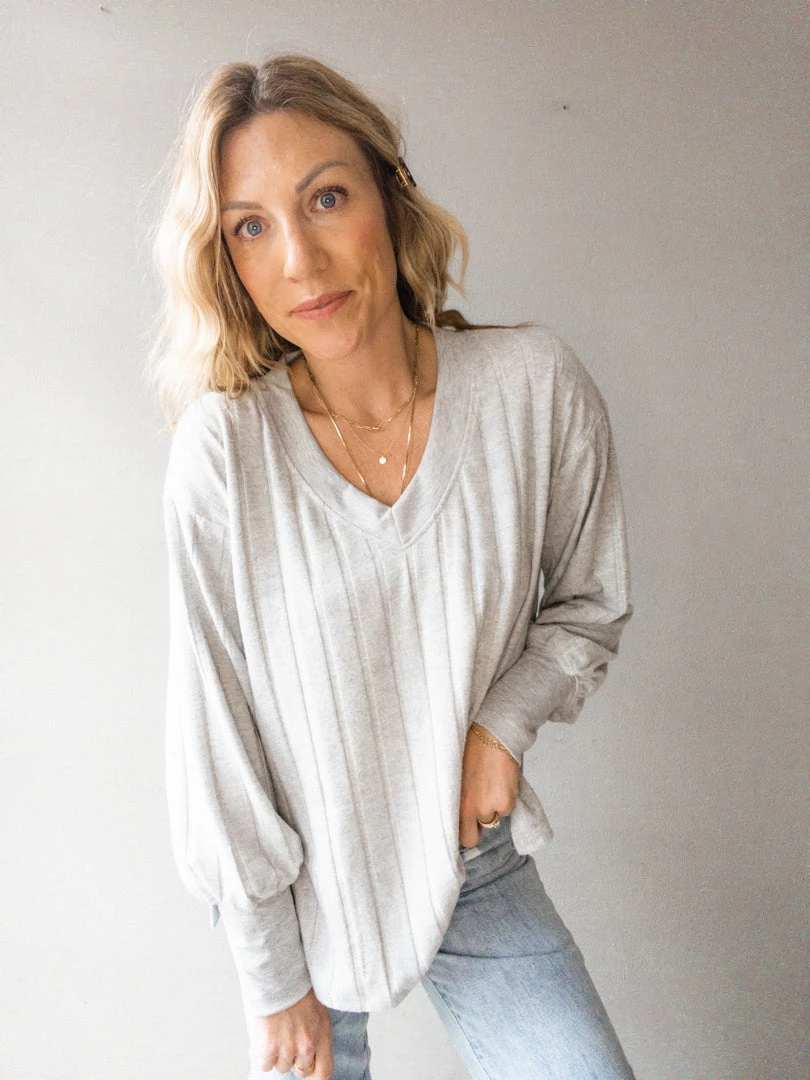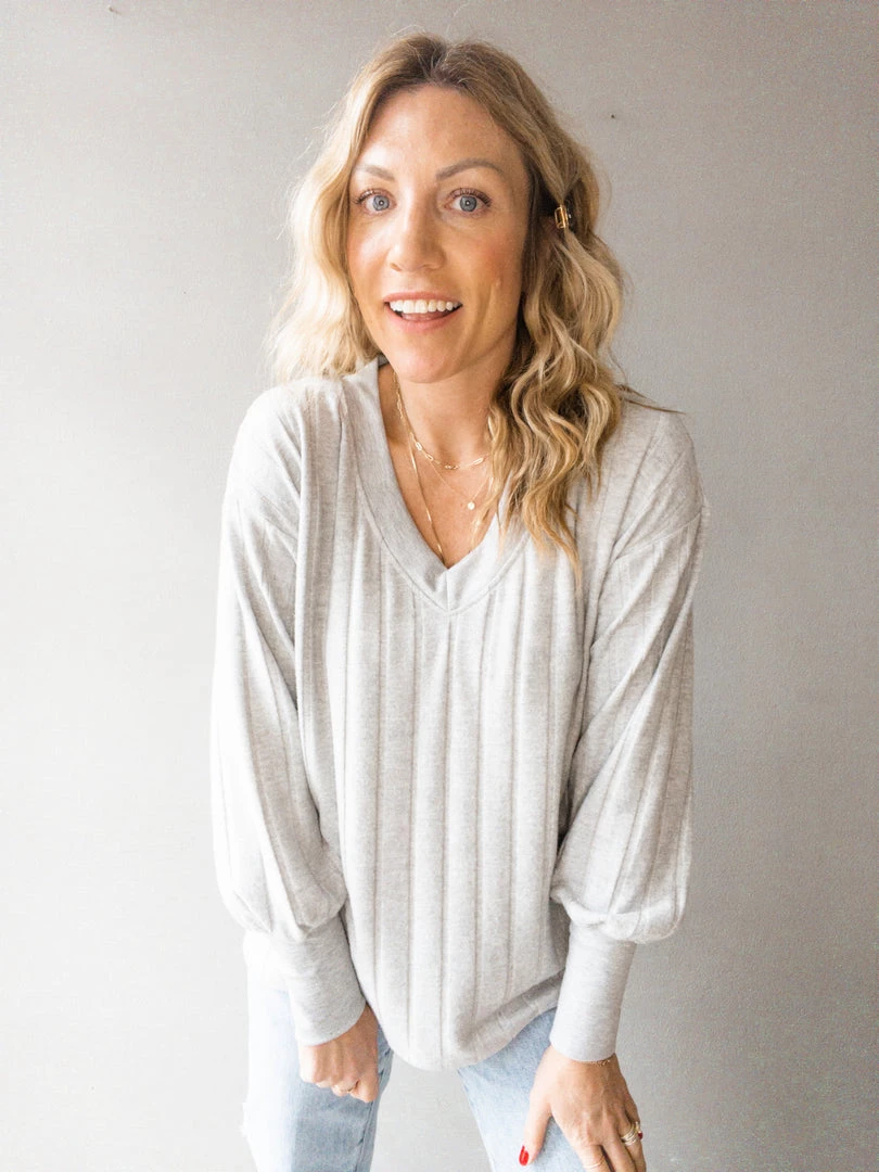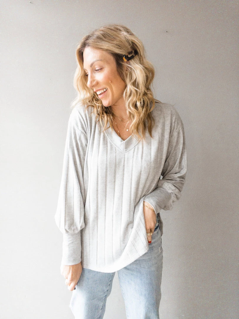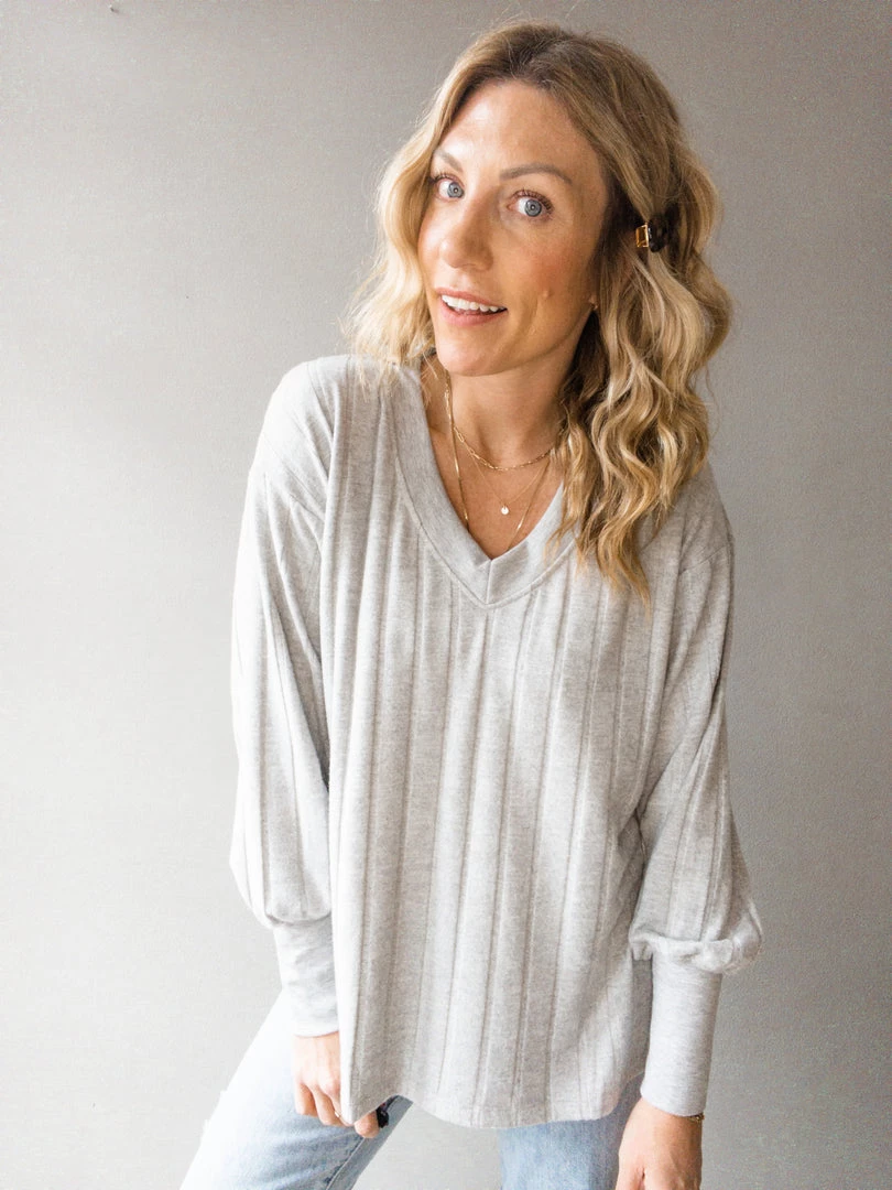 An easy go to, the Rumi Wide Rib Tunic. This cozy top is made in a buttery soft ribbed knit fabric featuring a puffed sleeve, ribbed cuffs with a v-neckline and side slits. It’s cute and comfy and perfect to wear with your favorite jeans or leather pants.