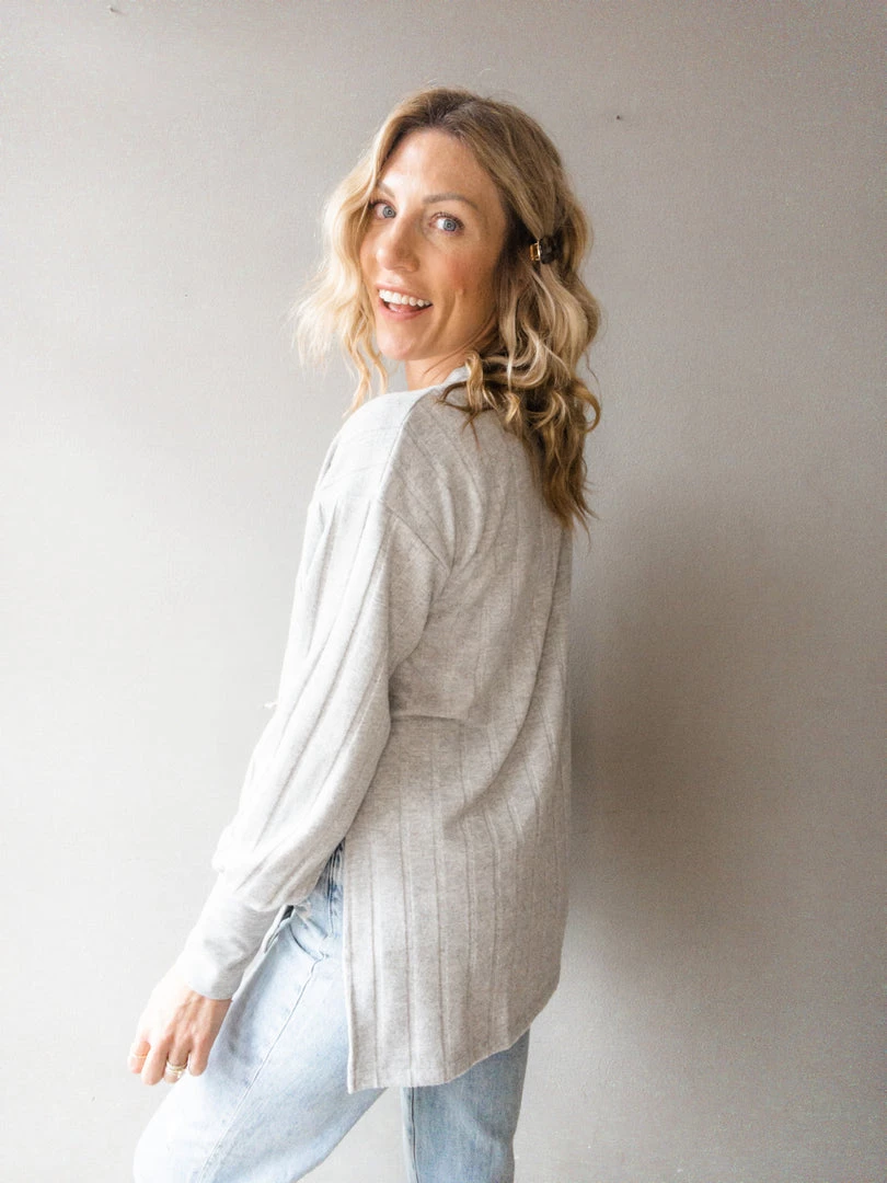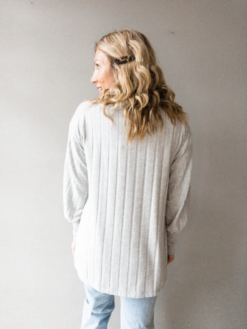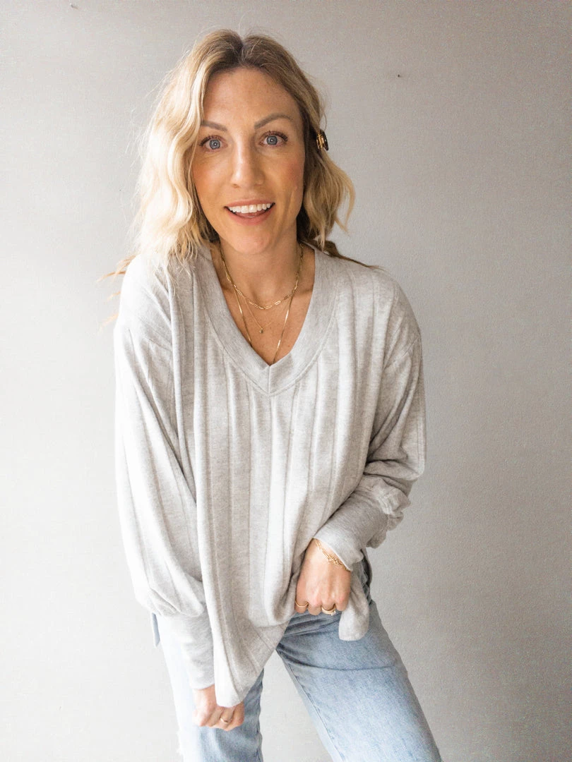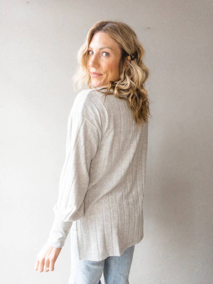 An easy go to, the Rumi Wide Rib Tunic. This cozy top is made in a buttery soft ribbed knit fabric featuring a puffed sleeve, ribbed cuffs with a v-neckline and side slits. It’s cute and comfy and perfect to wear with your favorite jeans or leather pants.