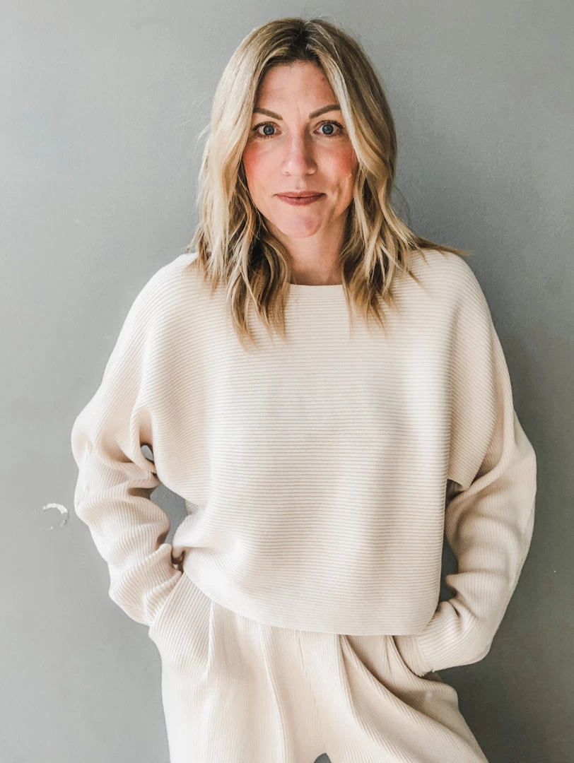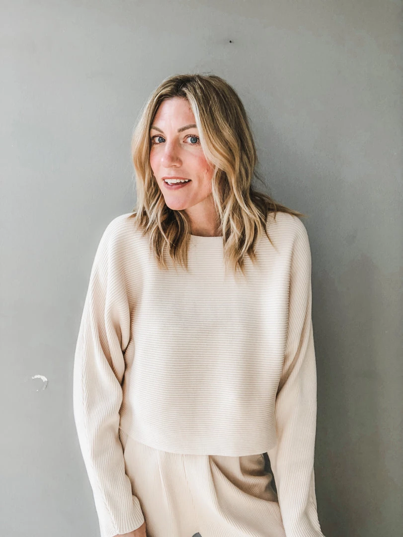 A ribbed slightly cropped sweater with a wide collarless neckline. Loose fitting and perfect worn solo with denim or paired as a set, sophisticated for work zoom meetings or for lounging with friends. Versatile and a great piece for any closet. (Ribbed Sweater Pant sold seperately).