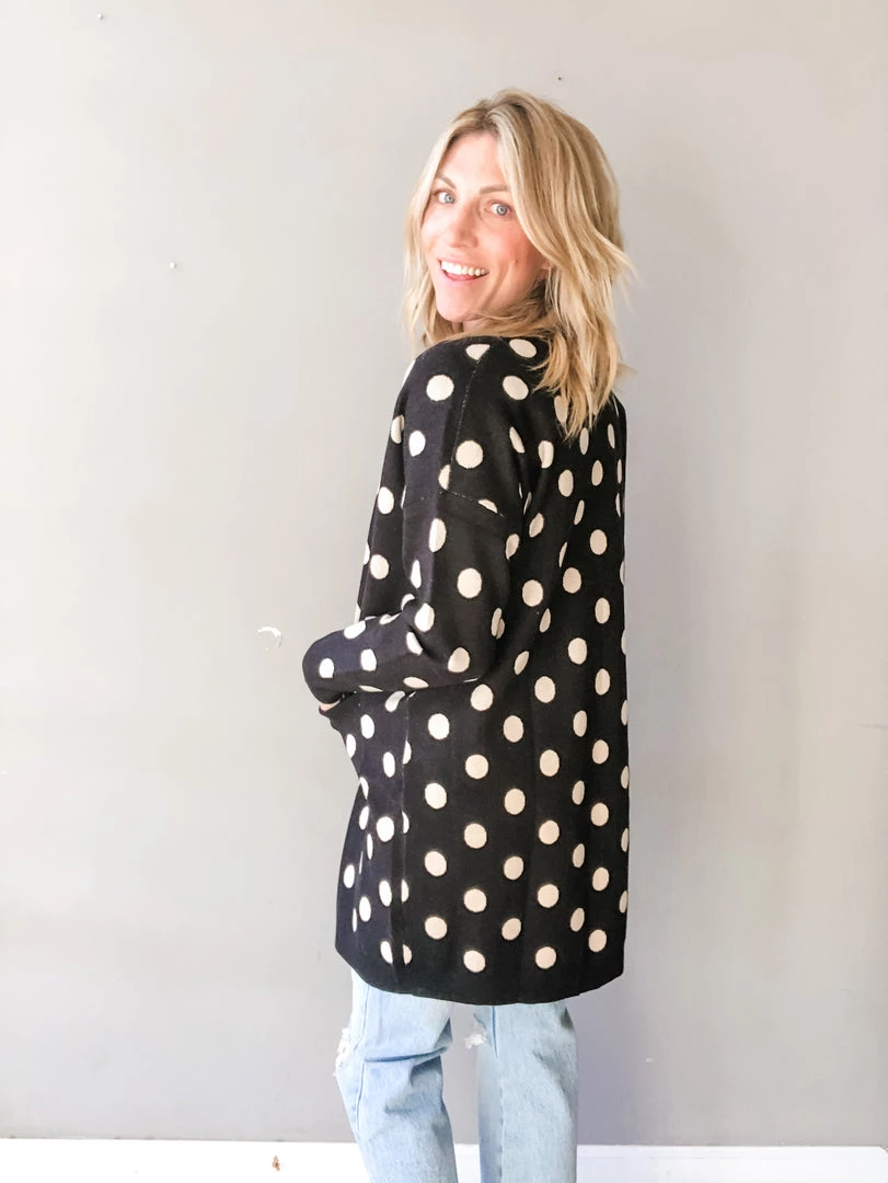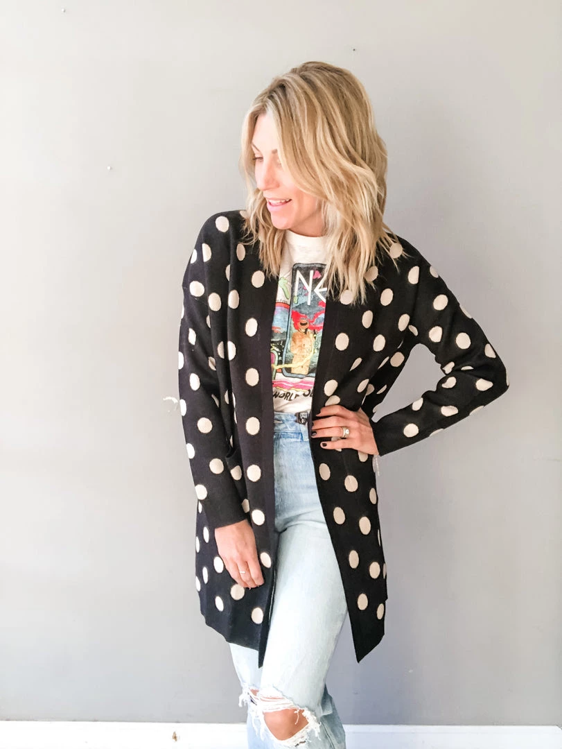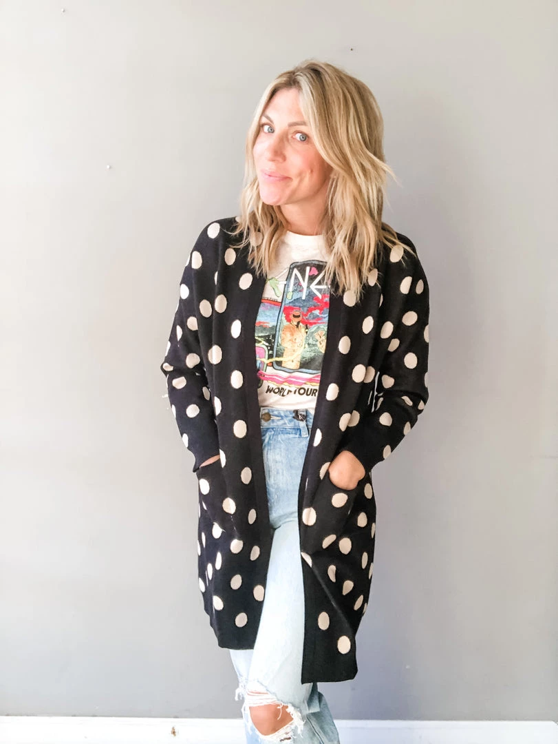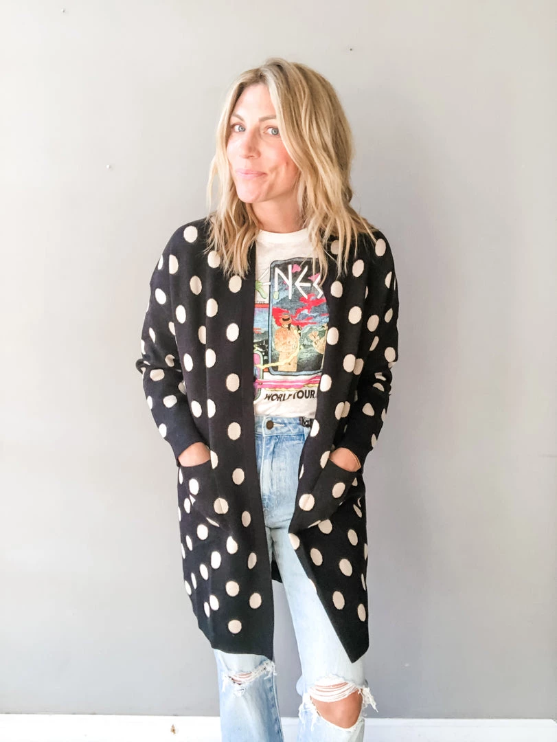 Effortlessly cool blazer vibes but with all the soft and cozy texture of your favorite cardigan. Fitted and tailored to at T, like it was made for you. We love this polka dot number dressed up for work or dressed down with a graphic tee, denim jeans and a rad hat. There’s no rules here, babe!