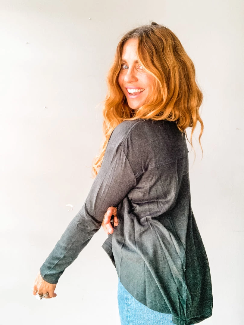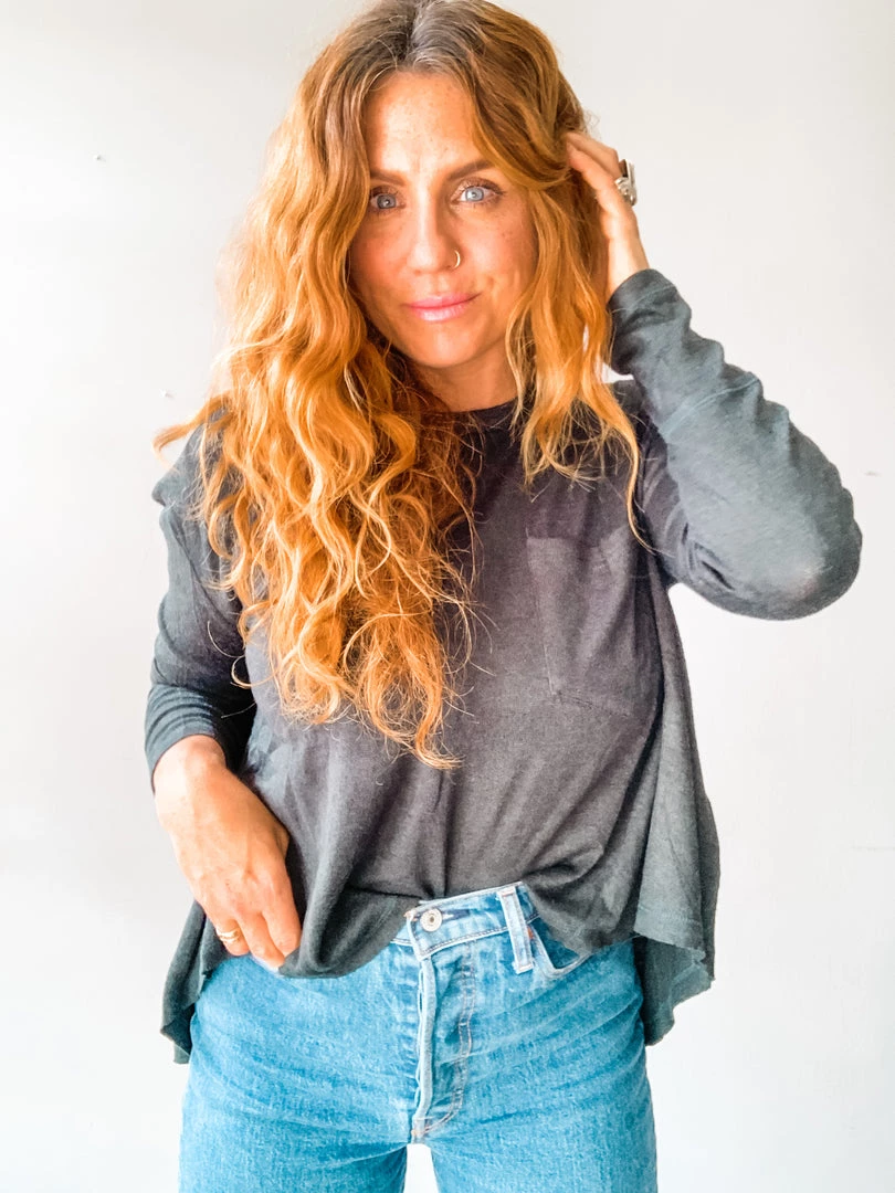 The Into the Clouds Top is a super soft and cozy basic long sleeved shirt with a hi-low cut that is perfect for casual Fall days! Available in two great colorways, you can’t go wrong with the loose and easy fit of this perfect everyday piece!