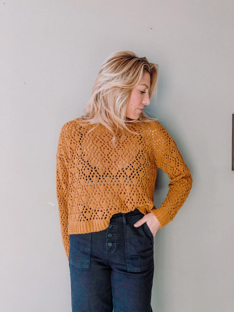 The Saltwater Luxe Autumn Sweater is a gorgeous crochet style sweater that fits perfectly loose and easy! We love the wide neckline and relaxed fit of this beautiful mustard sweater!