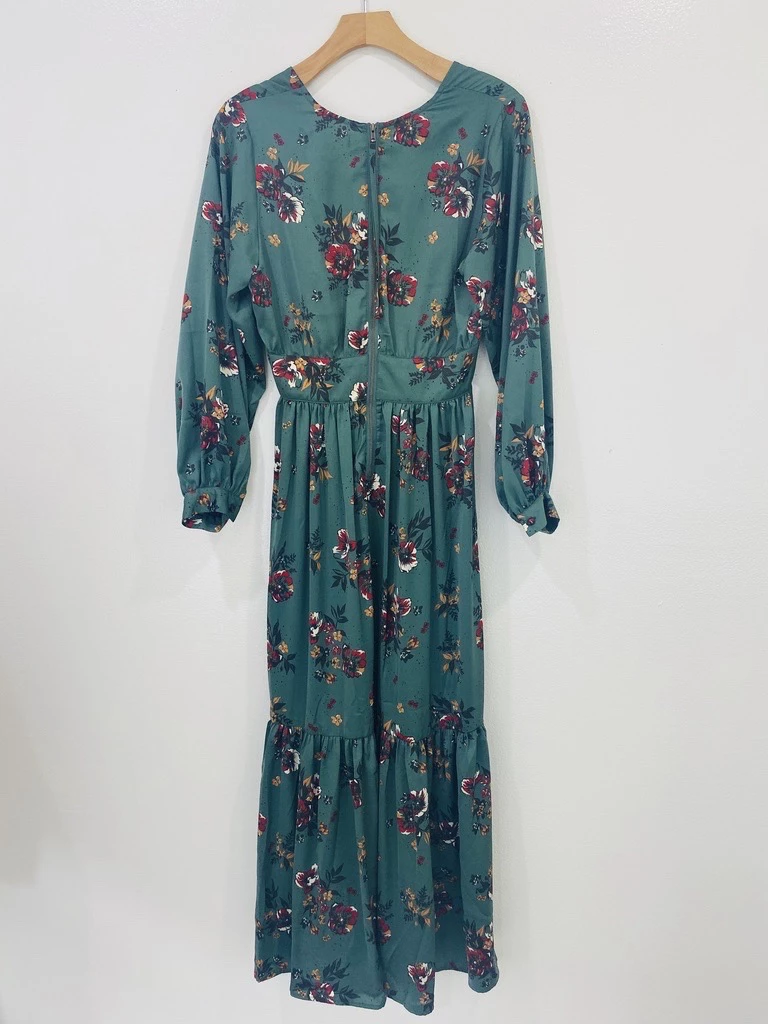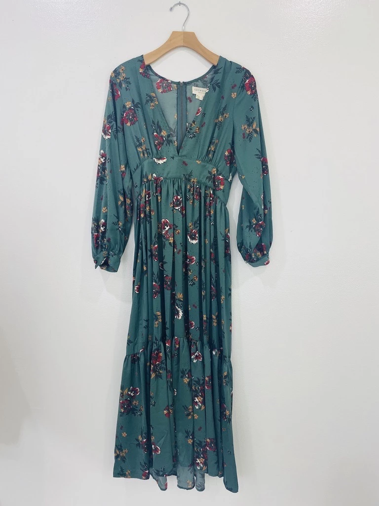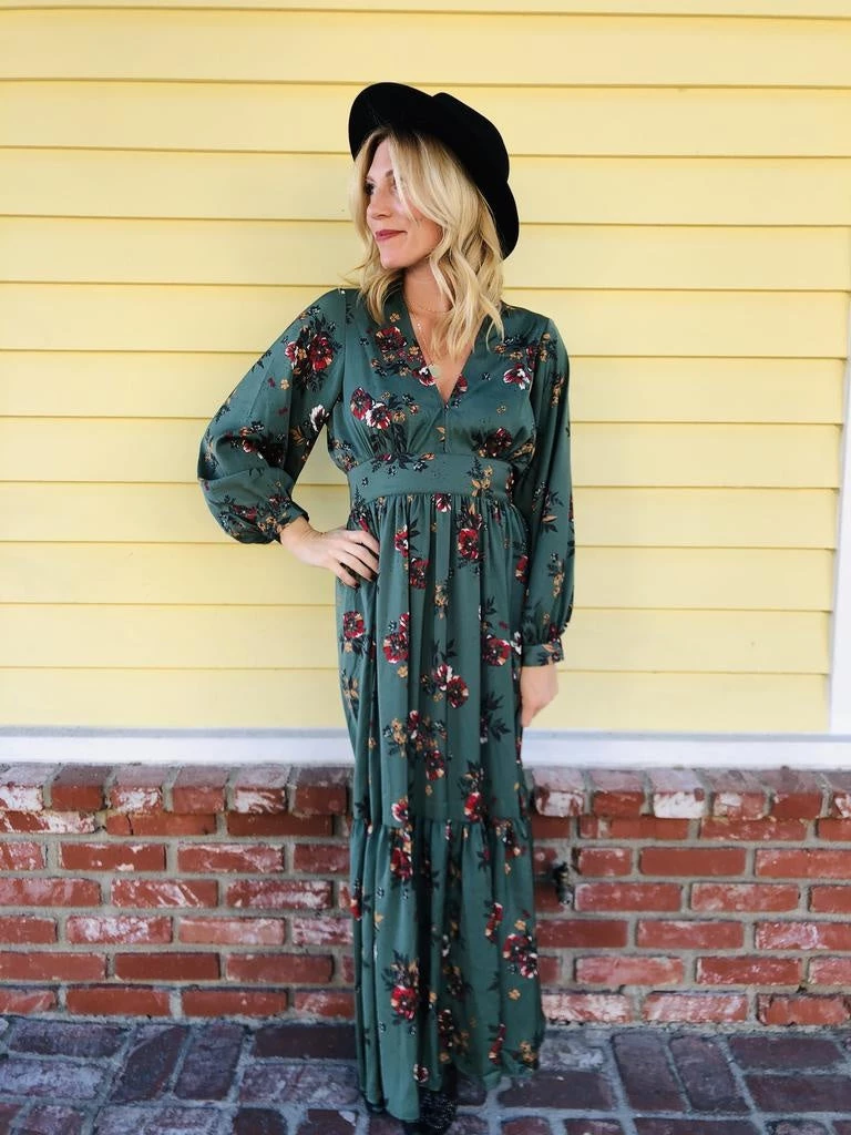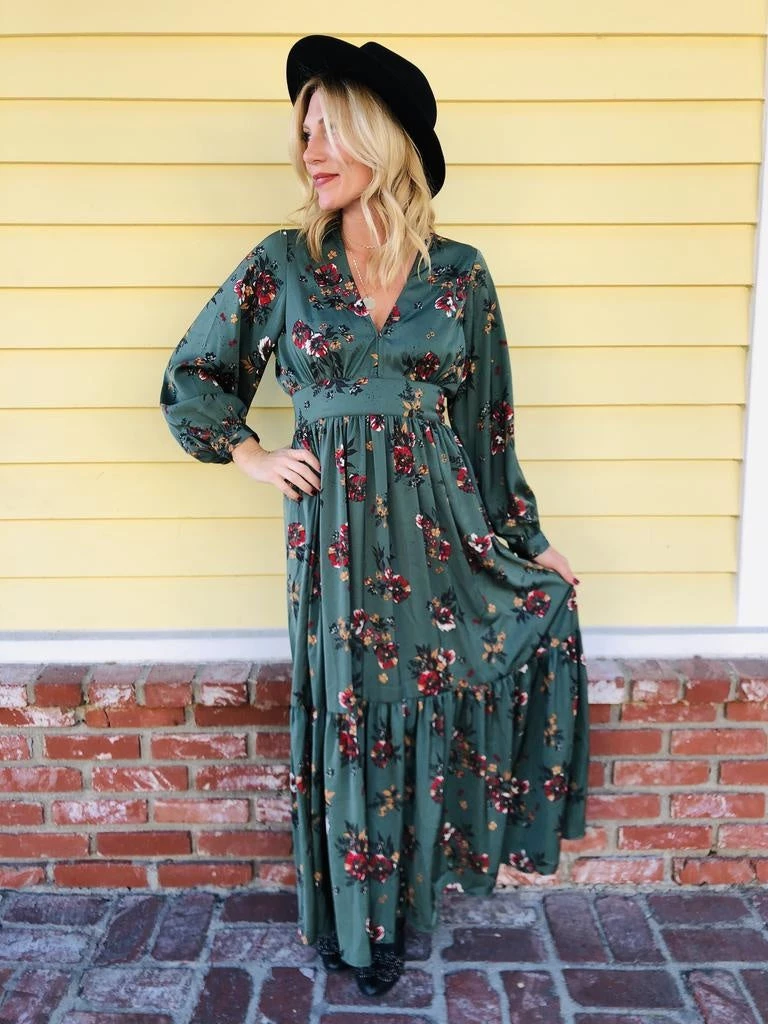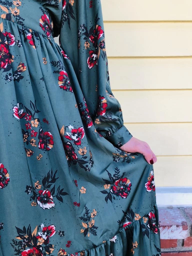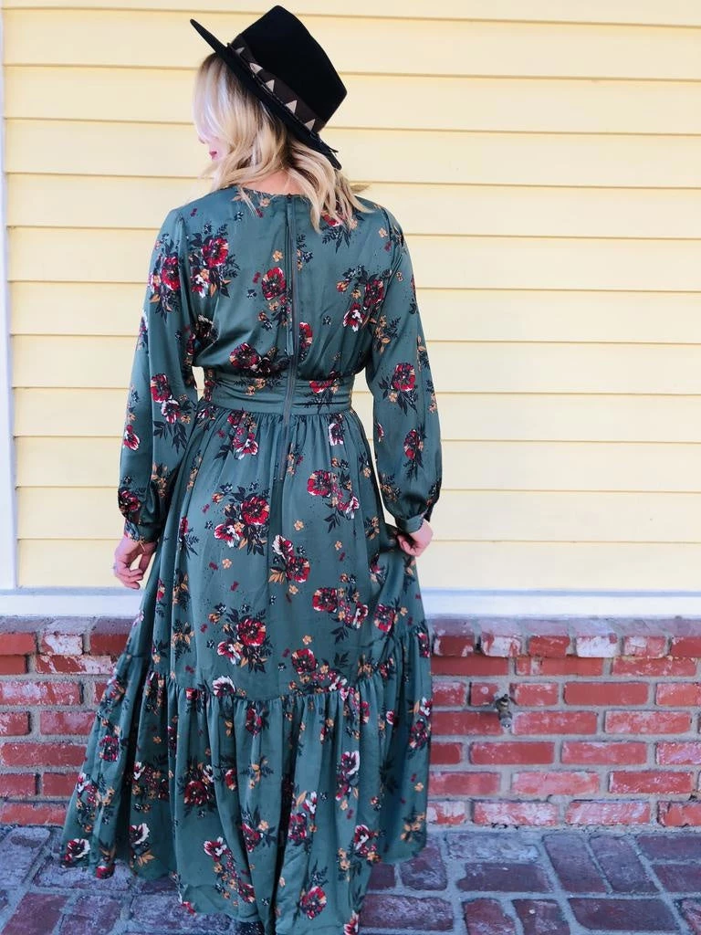 A beautiful floral maxi dress with a boho vibe we love. Loose fitting sleeves with button closure at the wrist, banded waist, zipper closure up the back and a flowy skirt. We love it paired with our Matisse Caty boots and a Lack of Color hat to cap off one of our favorite looks. Model wearing size M.