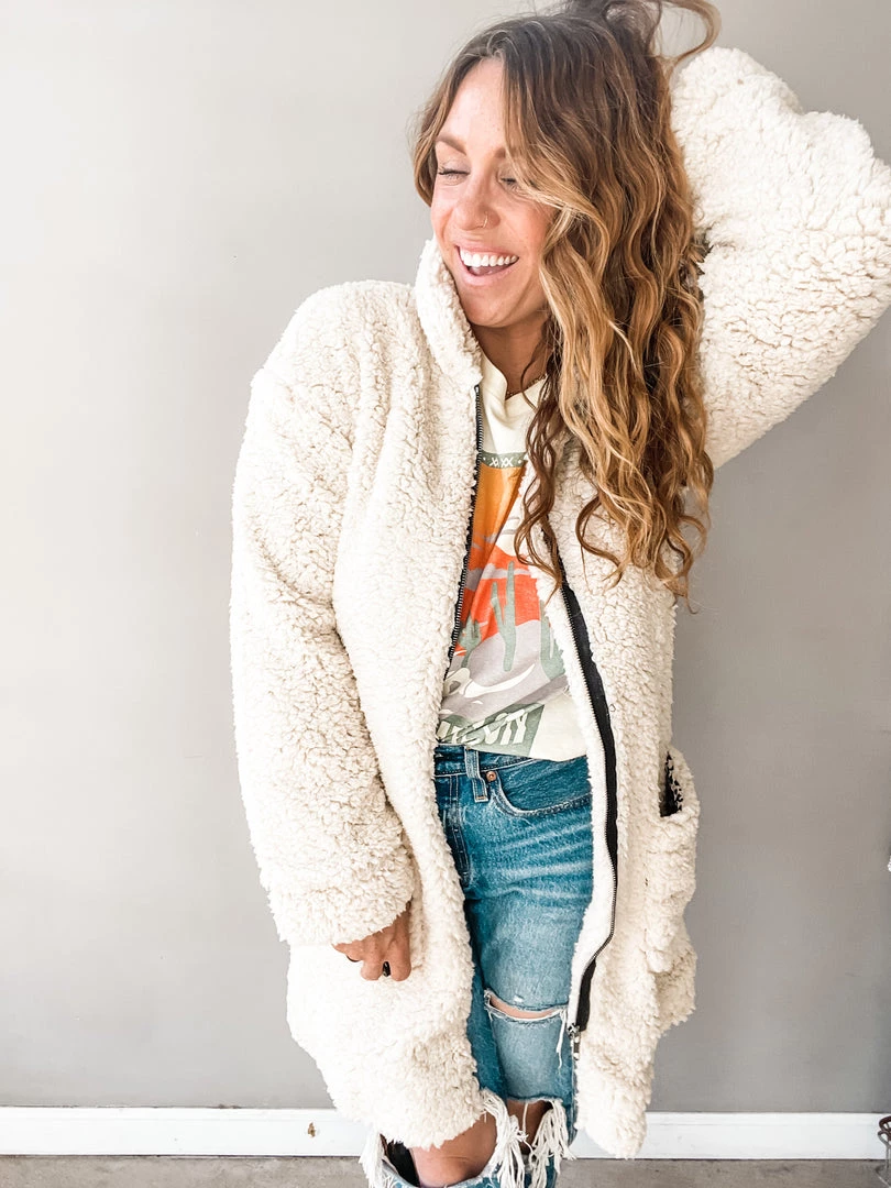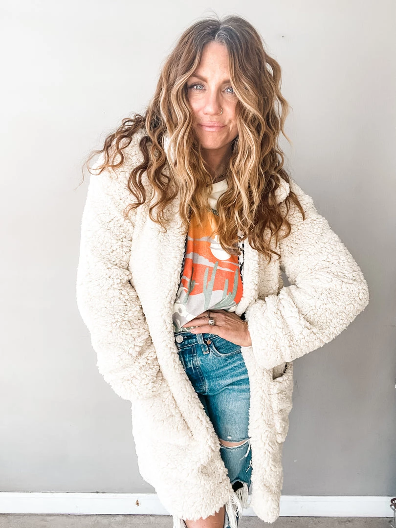 ‘Tis the season to stay bundled! This long-sleeve polyester jacket will give you the warm and fuzzies—literally. Elevate a black dress or white tee and jeans by throwing this cozy number over it! The off-white shade is the perfect neutral you can wear with anything.