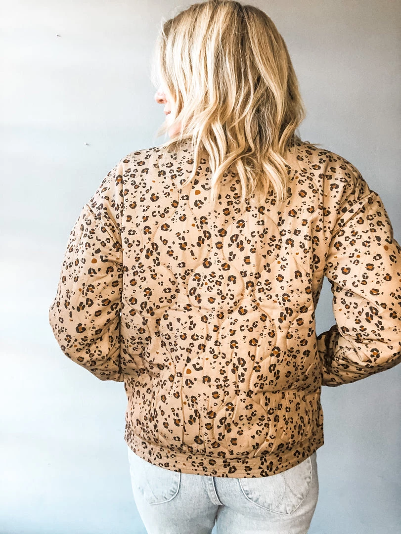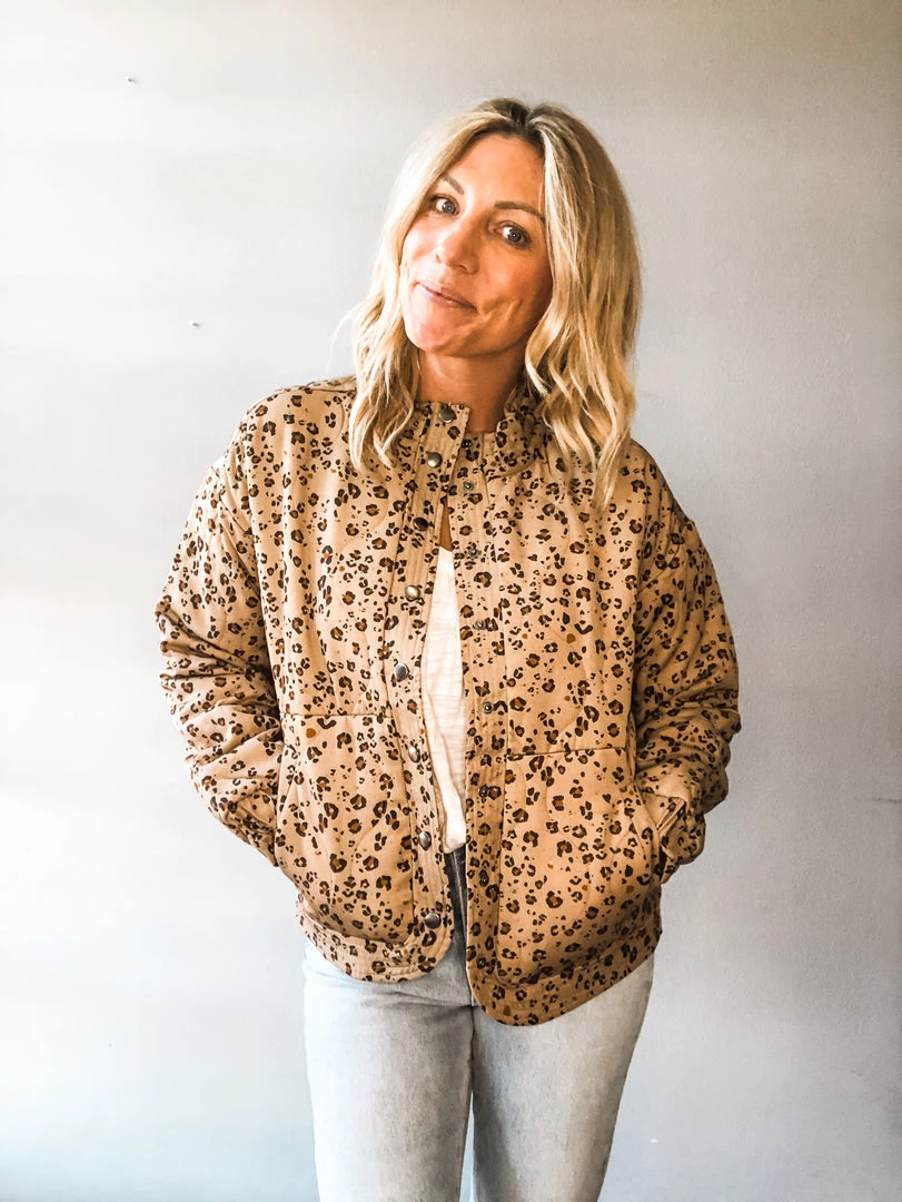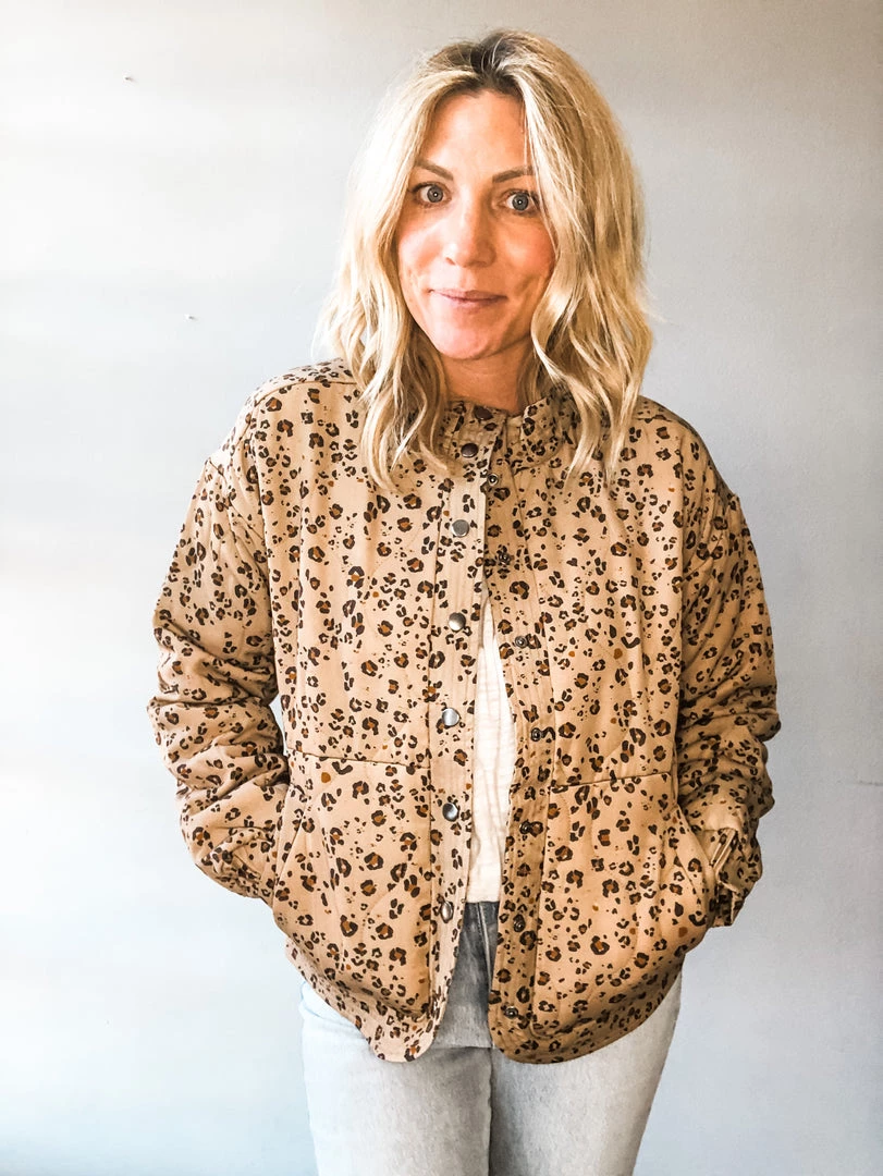 A light weight quilted leopard jacket we canβt wait to wear as cooler weather approaches. Button front with side pockets, this jacket is easy to layer over jeans and a tee or a little black dress. A fun statement piece that will turn any outfit to anything but basic.Β