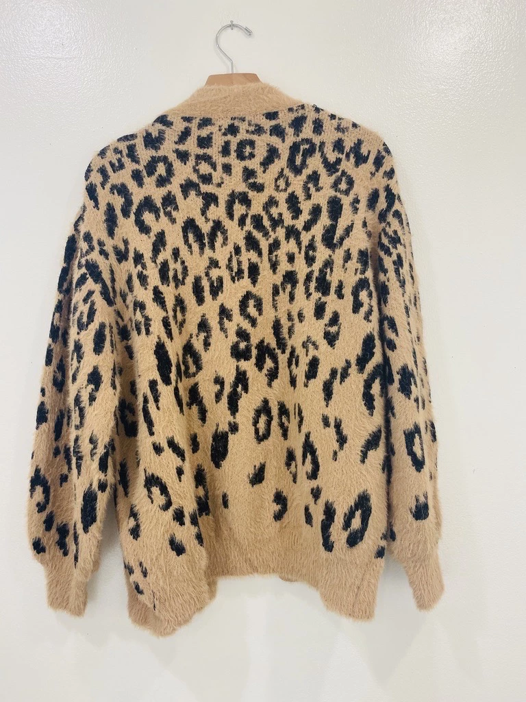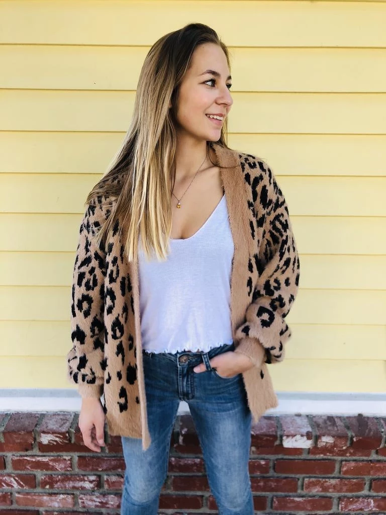 A fuzzy leopard cardigan we may just live in. Such an easy piece to make your every day look a little more fierce.