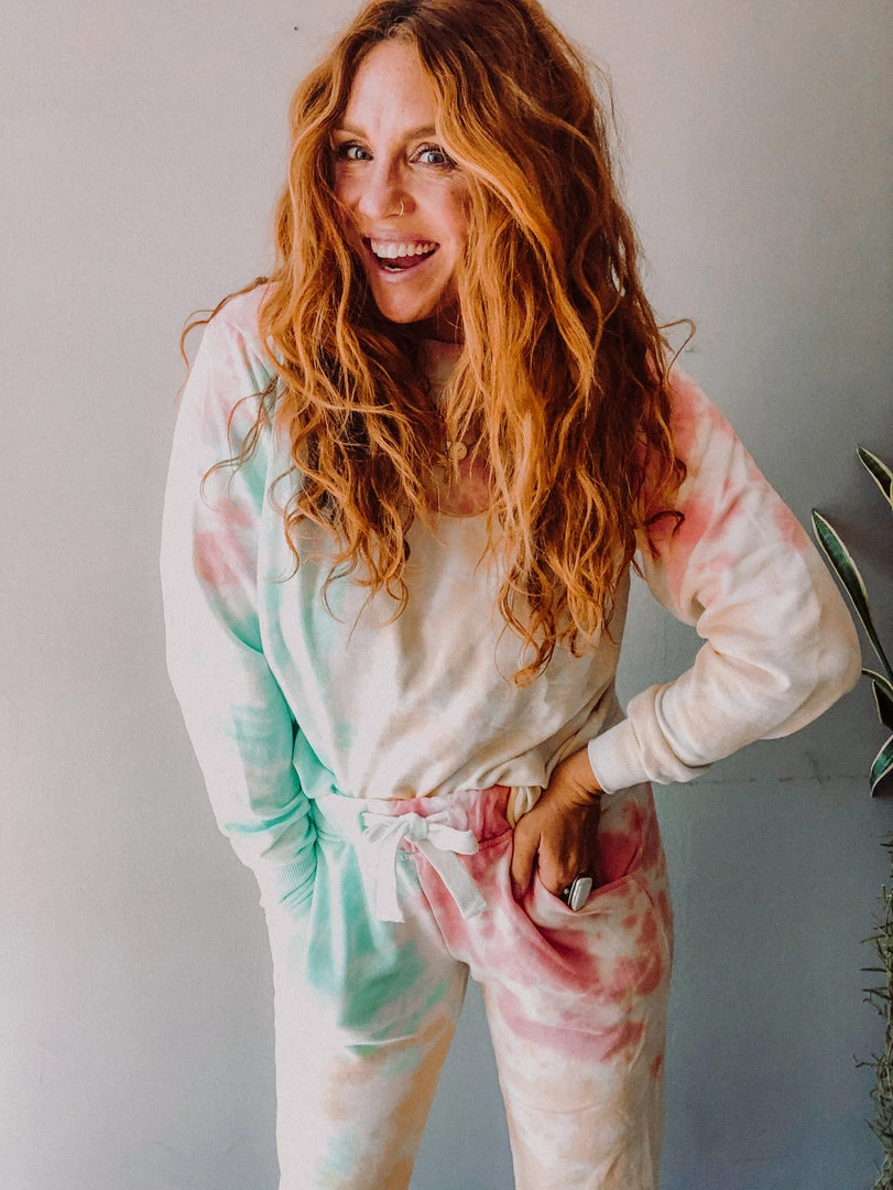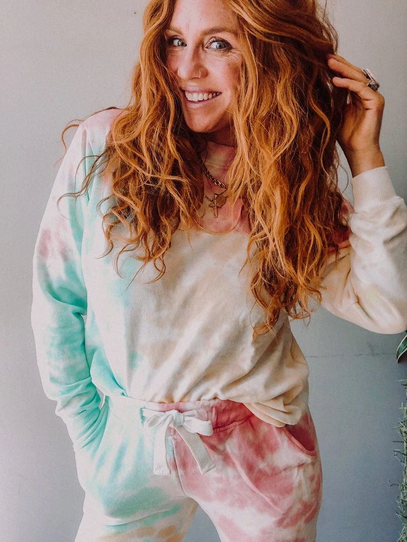 Our Somewhere Over the Rainbow Jogger is the coziest, slightly structured jogger with elastic waistline and cozy pockets. We LOVE these fun joggers paired as a set with the matching sweater or solo with a great basic tee or tank.