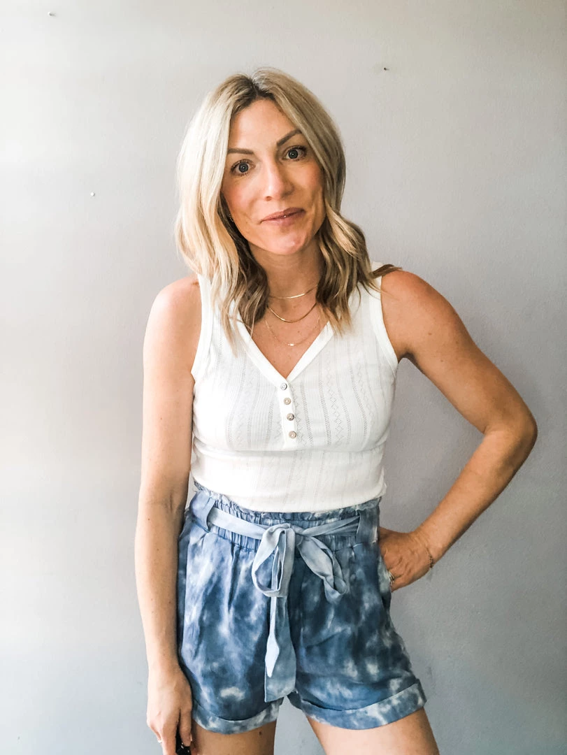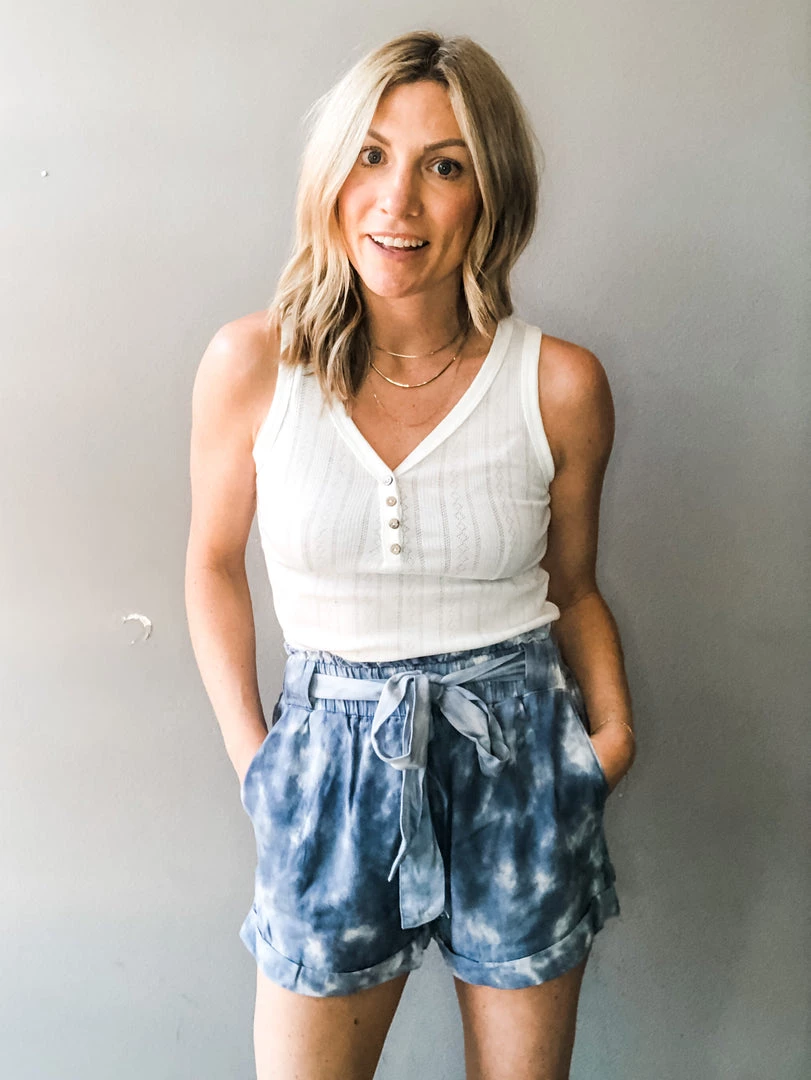 An easy and comfortable pair of shorts we plan to live in all summer! These tie dye shorts have an elastic waist with belt and side pockets and are so easy to wear. Pair with your go to basic tee or tank for a look that is casual and fun!