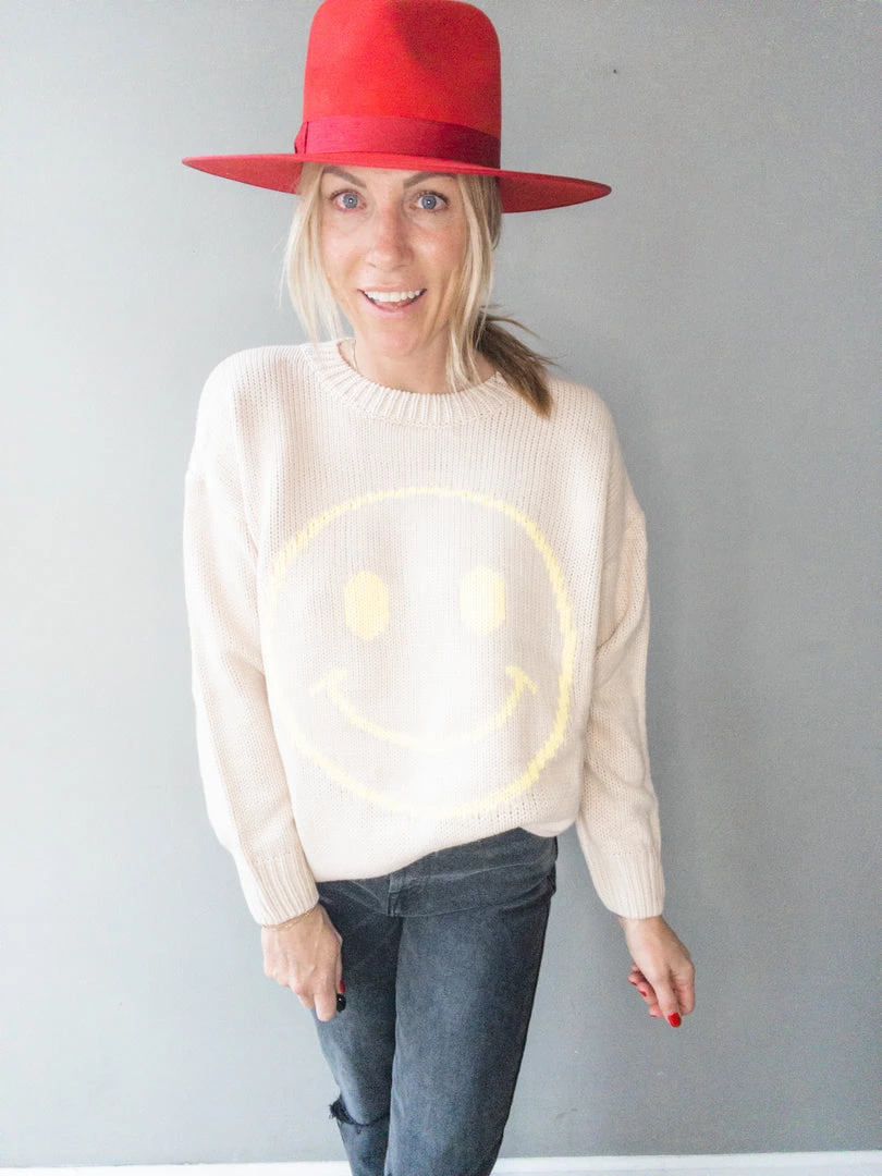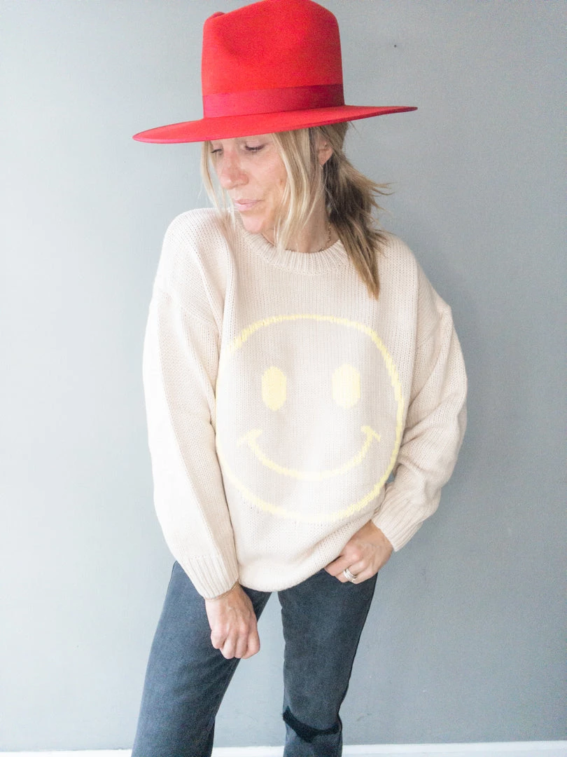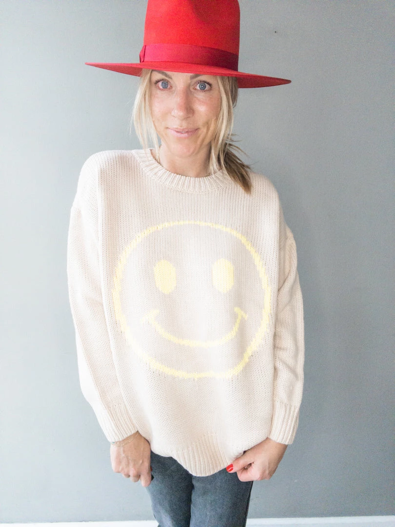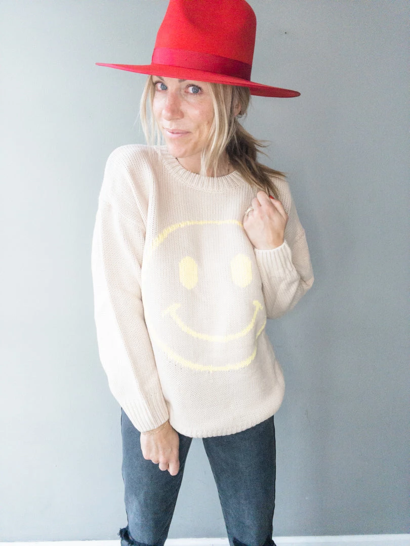 Make a statement with the Have A Good Day Sweater. This oversized knit sweater has a neutral body making it easy to pair with all your favorite bottoms, while having a bright pop of Neon Yellow in the smiley face for that extra oomph. Pair with denim or toss on after a workout for a cool, casual look.