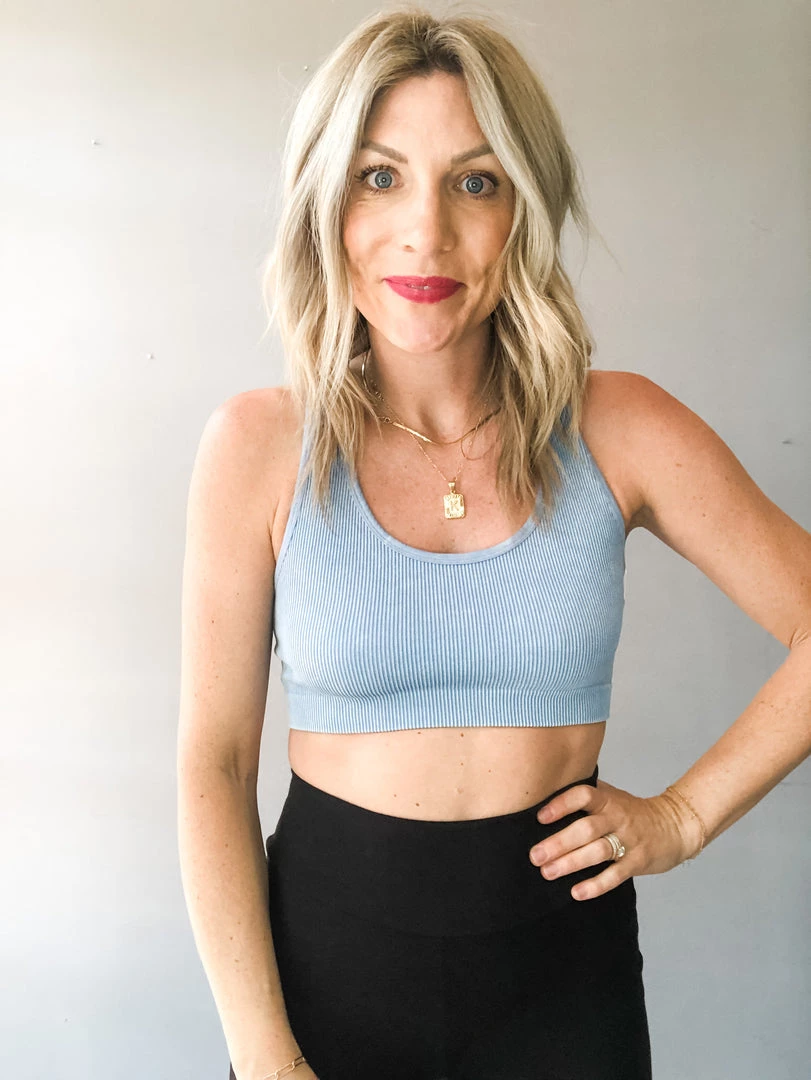 A super soft ribbed knit sports bra with racer back cut. Perfect for lougning, wearing to pilates or under your fav graphic tee. Comfortable and supportive for daily wear. Available in two colorways.