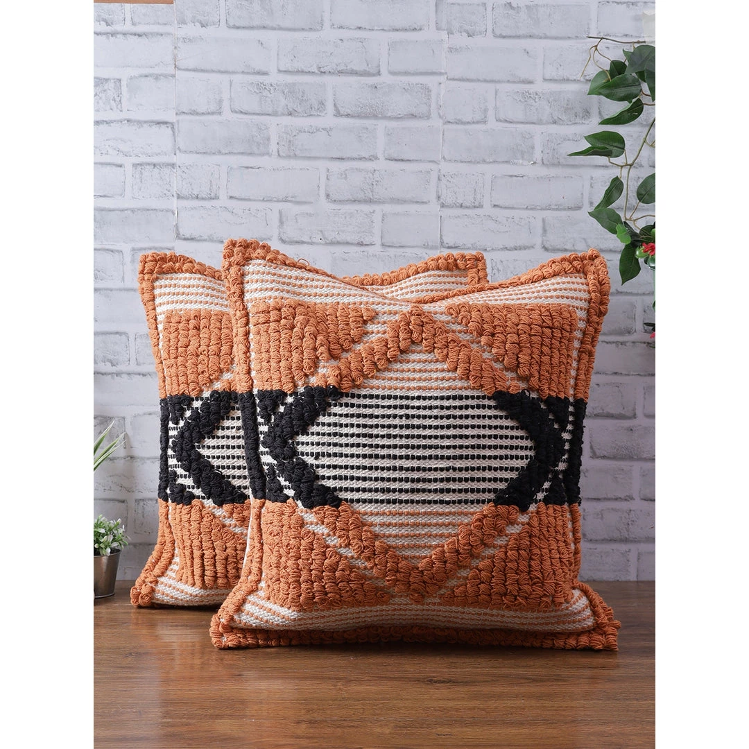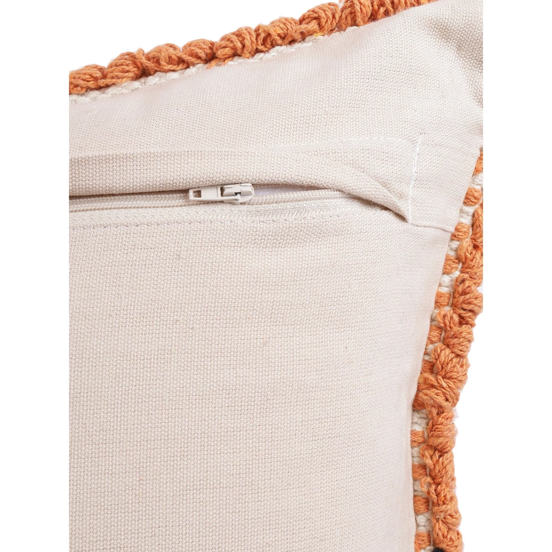 A beautiful orange and black handwoven textile that adds that little pop of color! This sqaure cushion cover is a cotton material with back zipper closure.