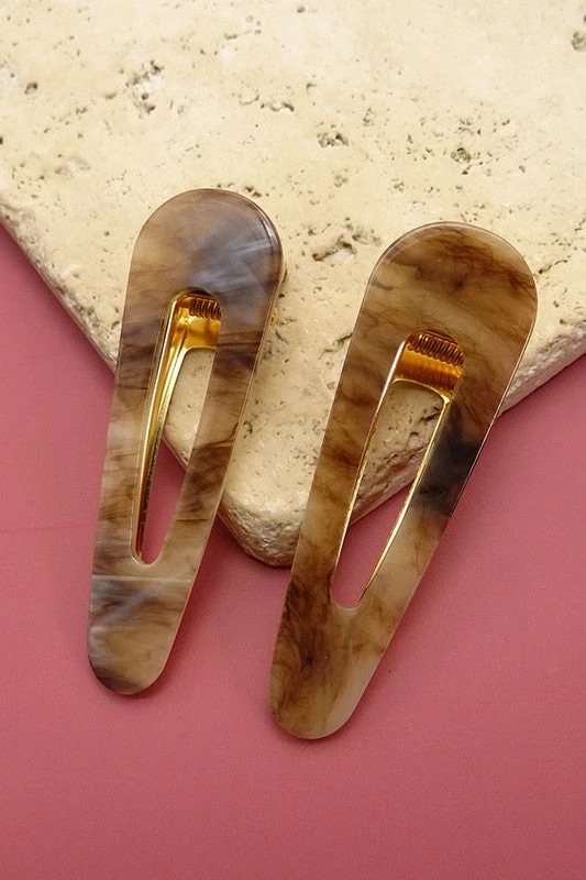 A pair of resin hair clips that are perfect for pinning up all hair types.