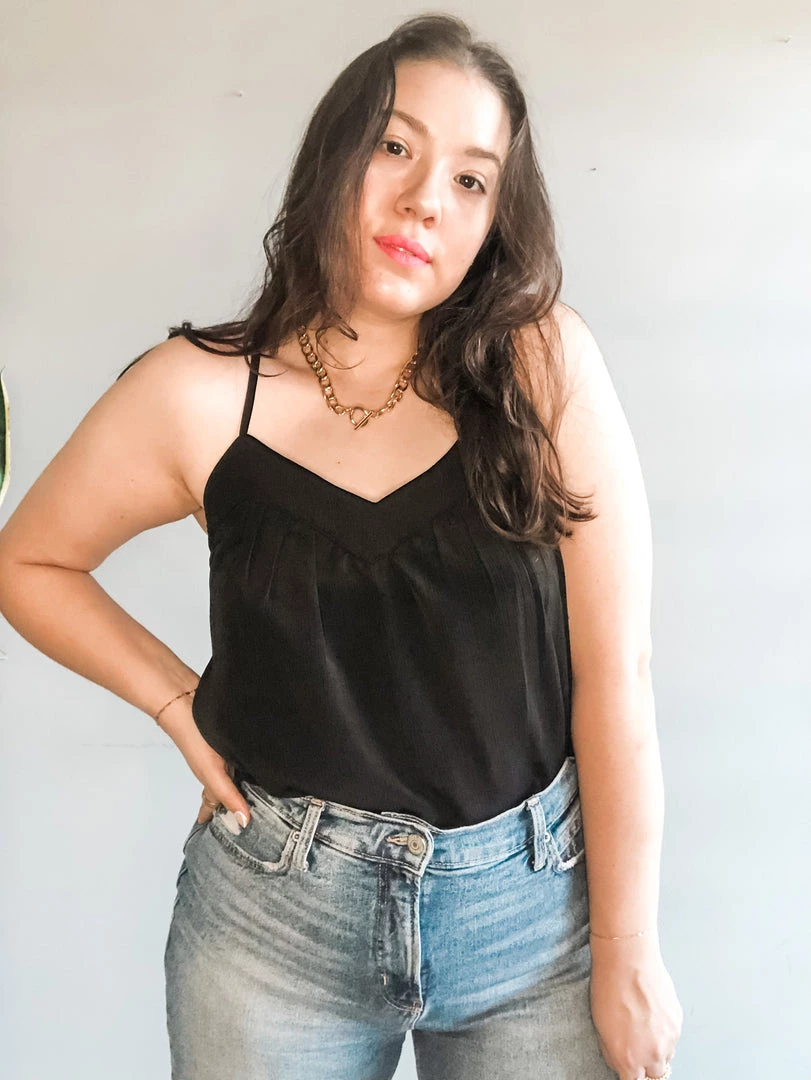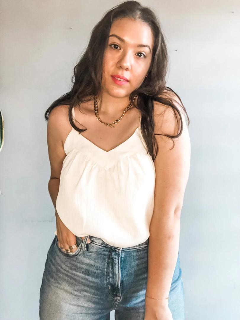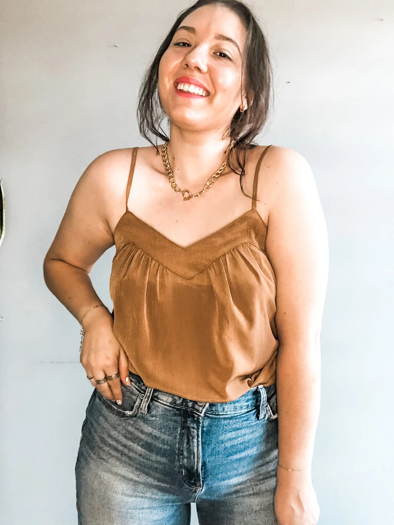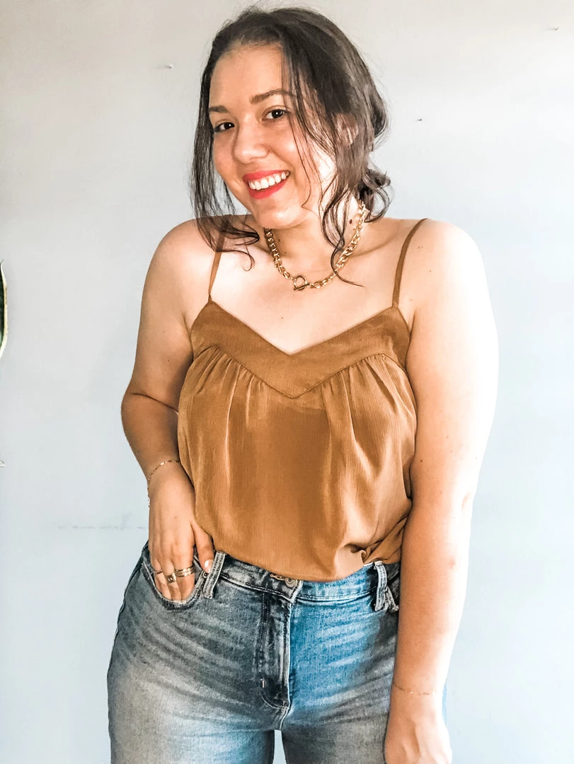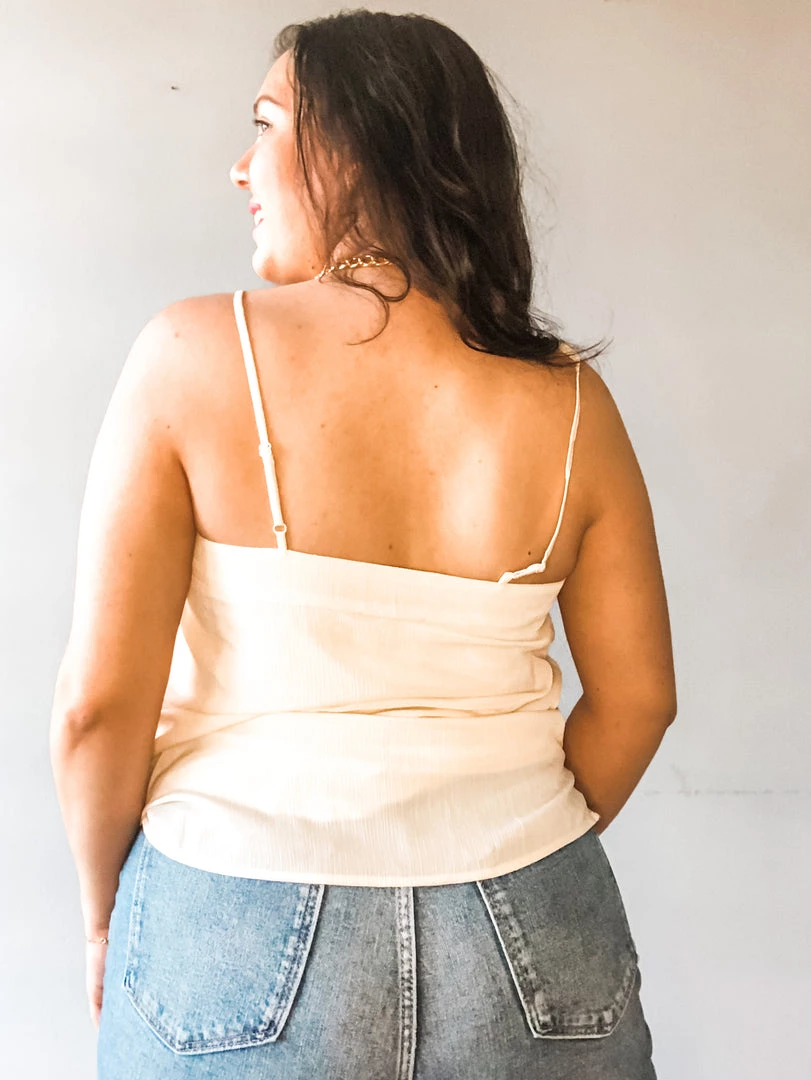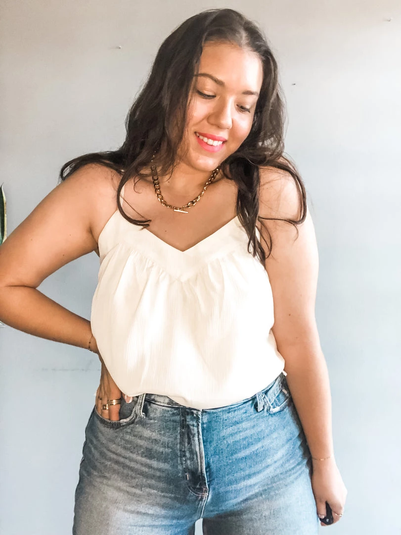 The In Harmony Cami is the perfect easy basic cami to take from day to night, work to play! This sophisticated cami pairs well with jeans, or even your go-to work attire! We love the slight v neckline, adjustable straps and blousy fit of this classic tank. Available in three stunning neutrals…we can’t quite pick a favorite!!!