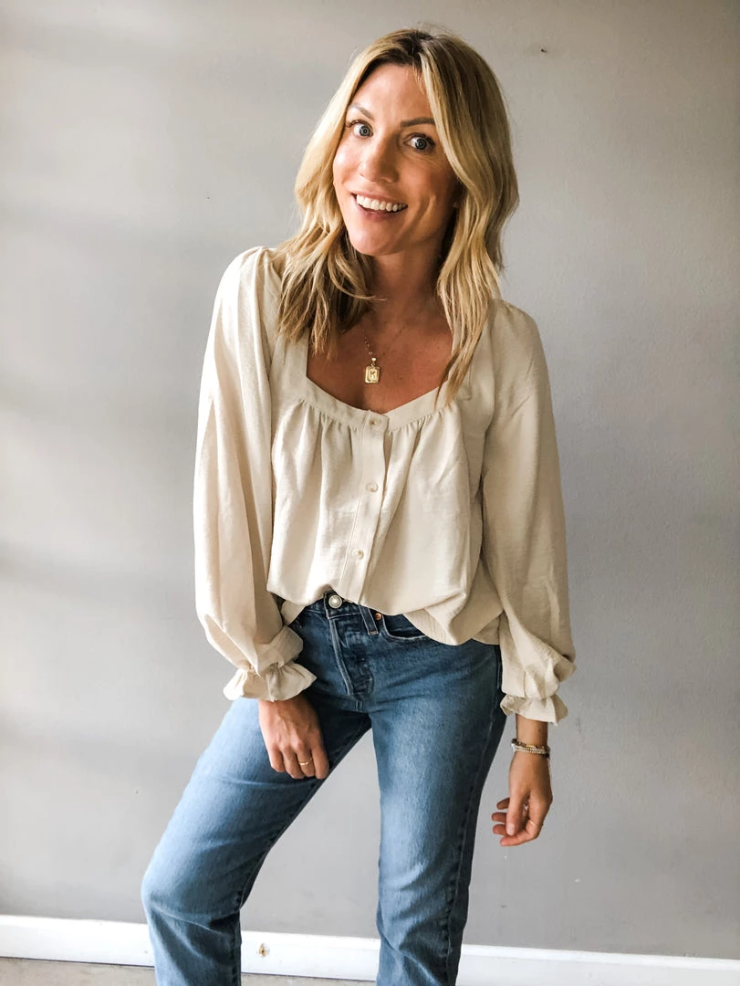 She’s just too sweet! The Sweet Tooth Blouse is perfectly feminine and a great piece for work, play and everything between. We’re loving the flirty touch with the square neck and ruffle cut sleeve. Functional buttons make for an easy fit for a variety of bust sizes. Wear tucked into your favorite denim or loose for a more flowy fit.