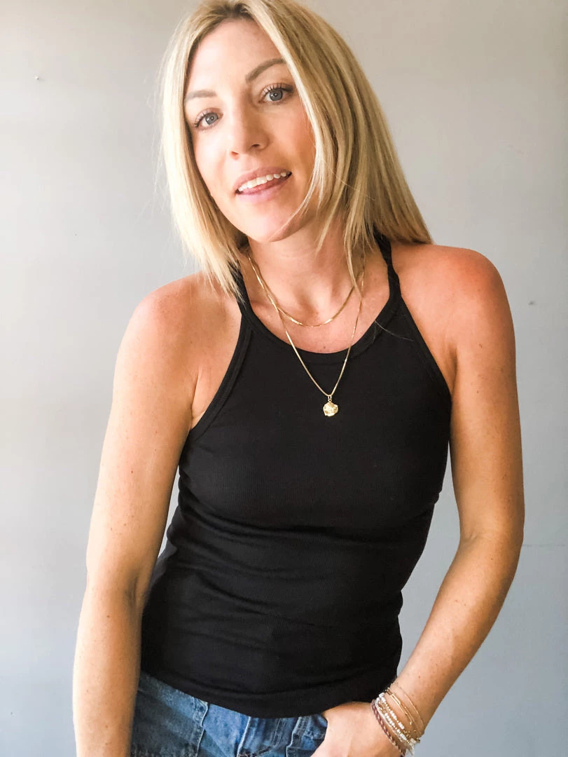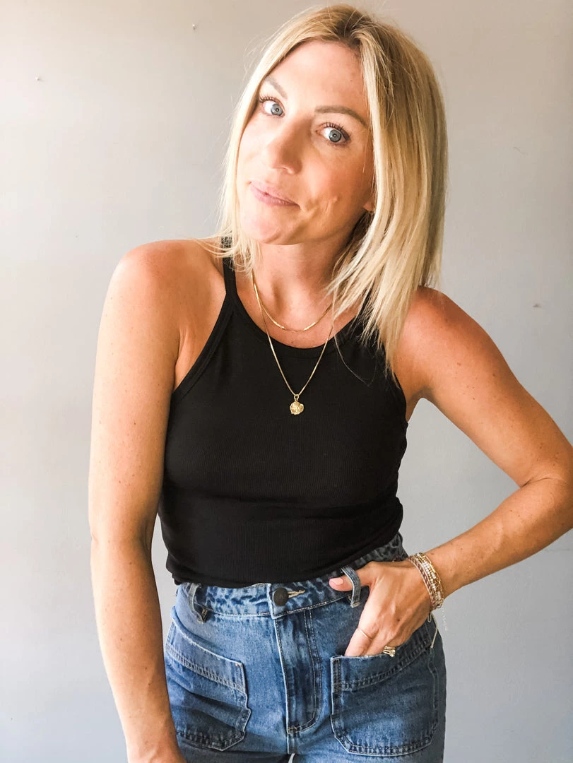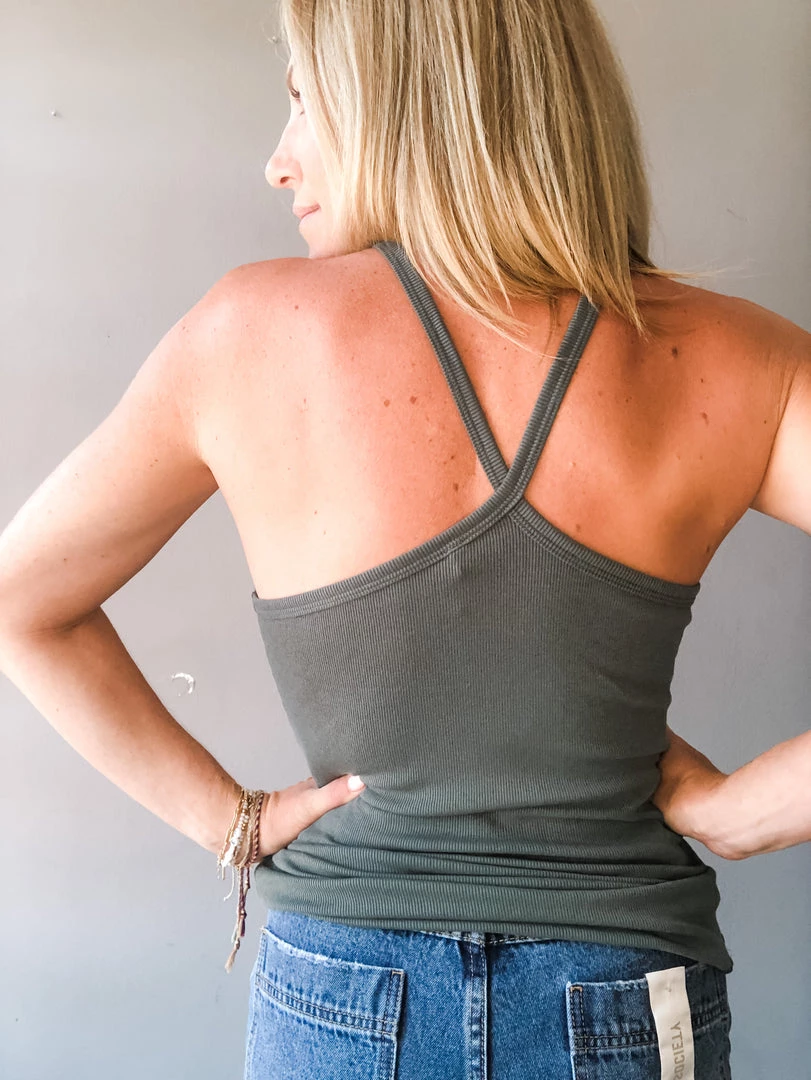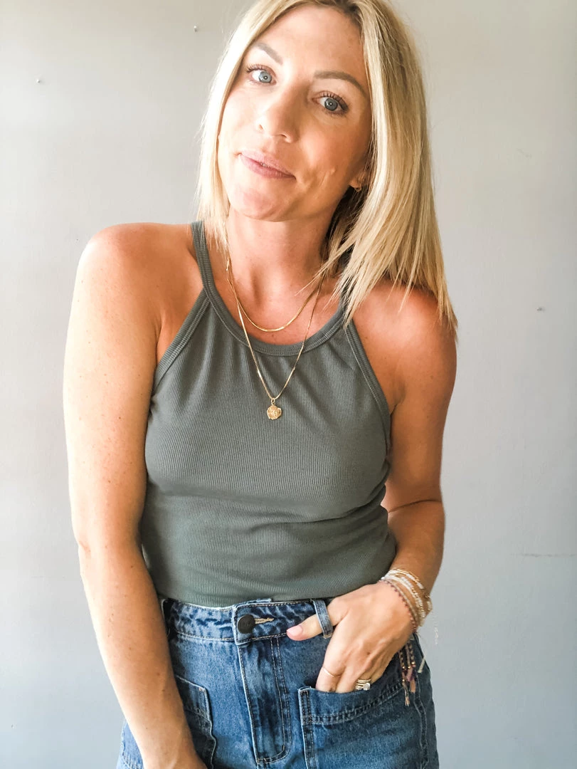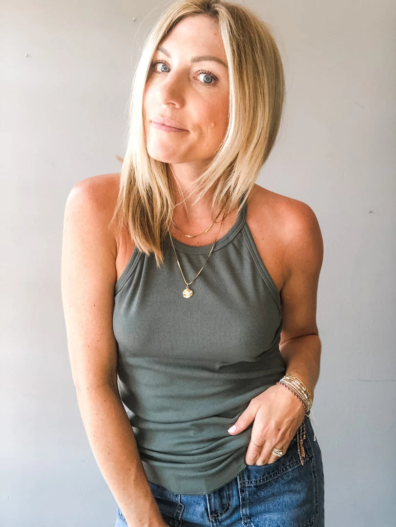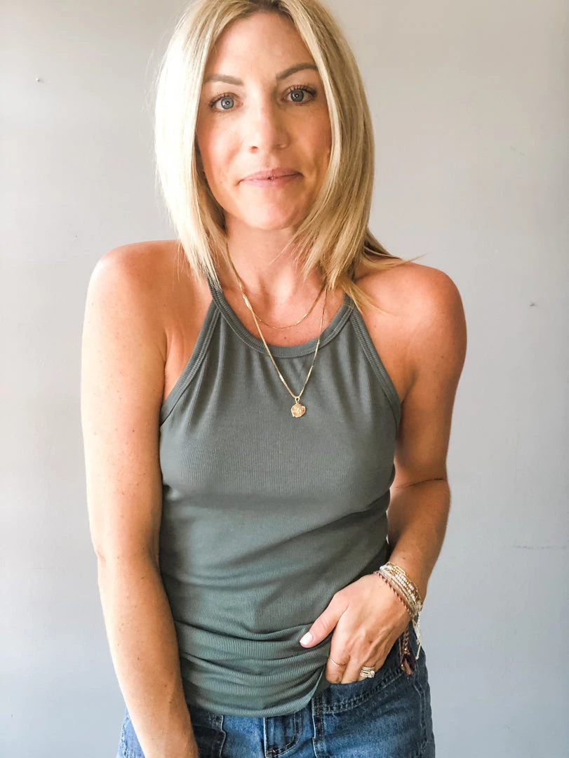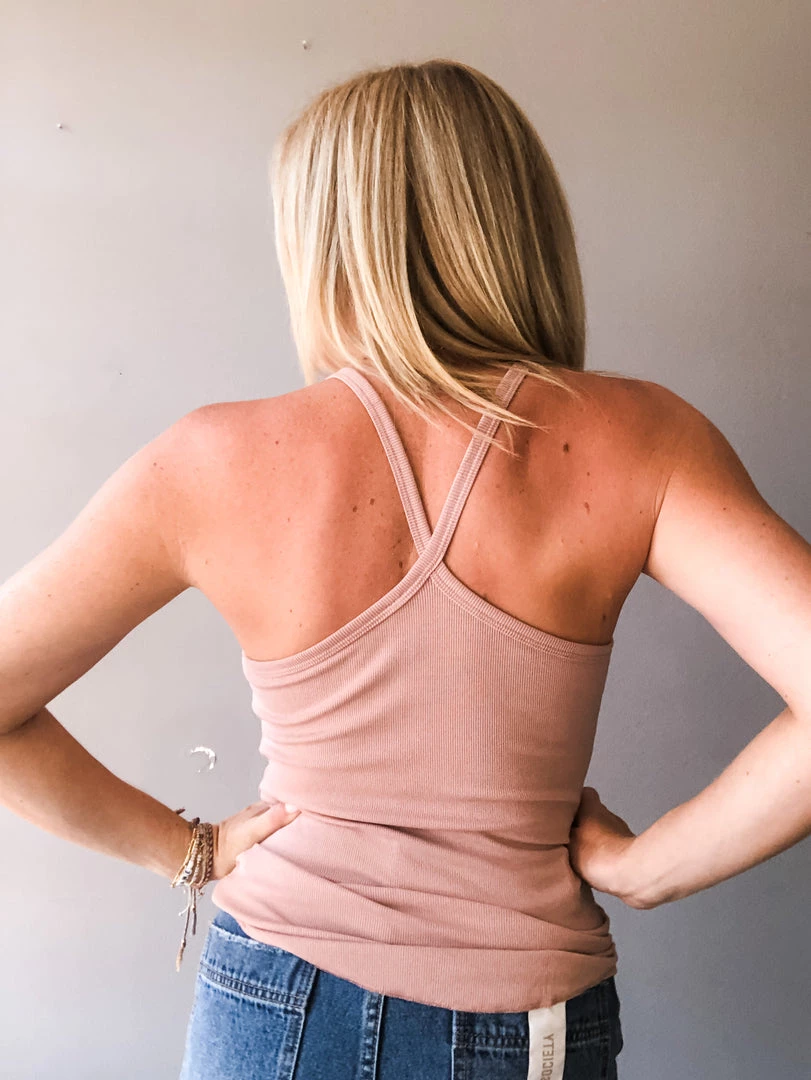 A lightweight ribbed tank with a high scoop neck and racer back, perfect to toss on for literally everything. Pair with your favorite denim, tuck into a midi skirt, wear to your next yoga class or while lounging. An easy everyday tank we must have in all three color ways.