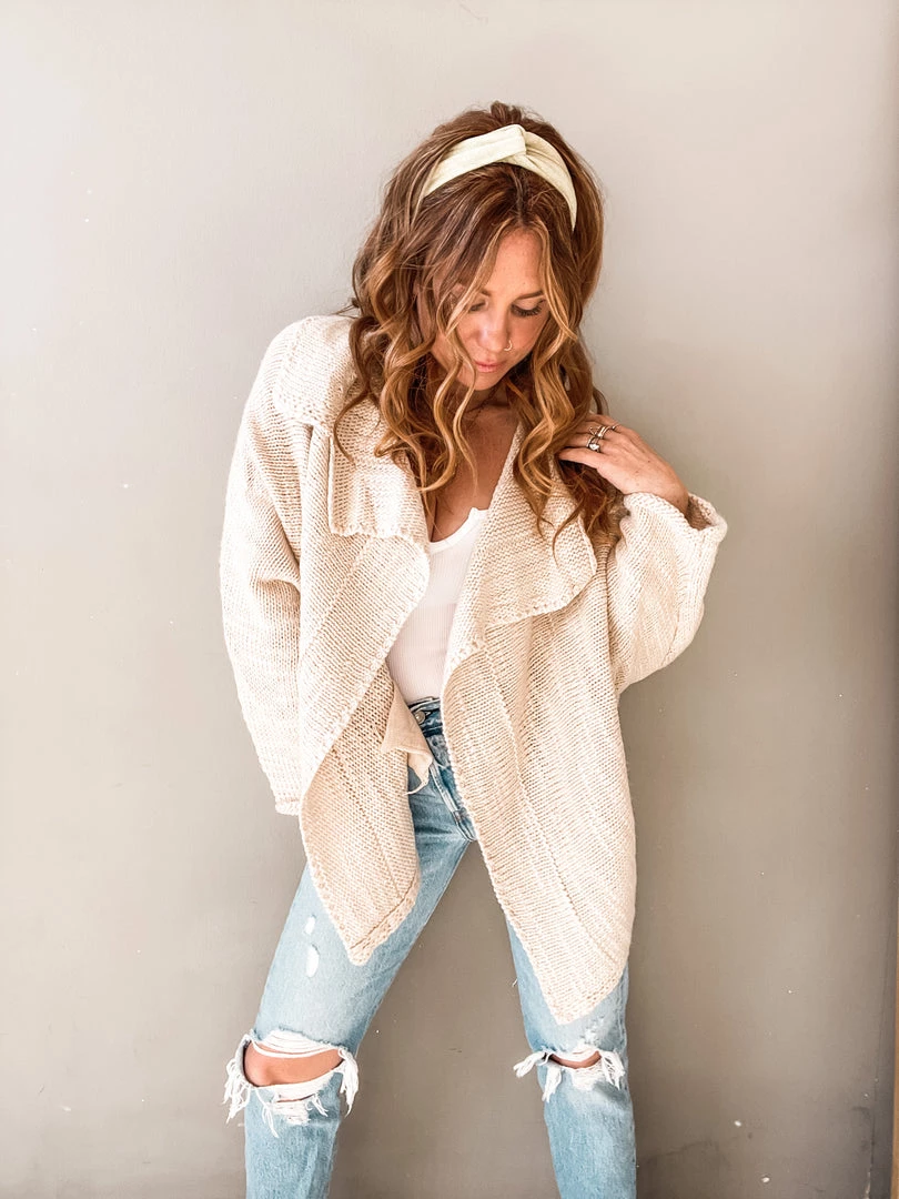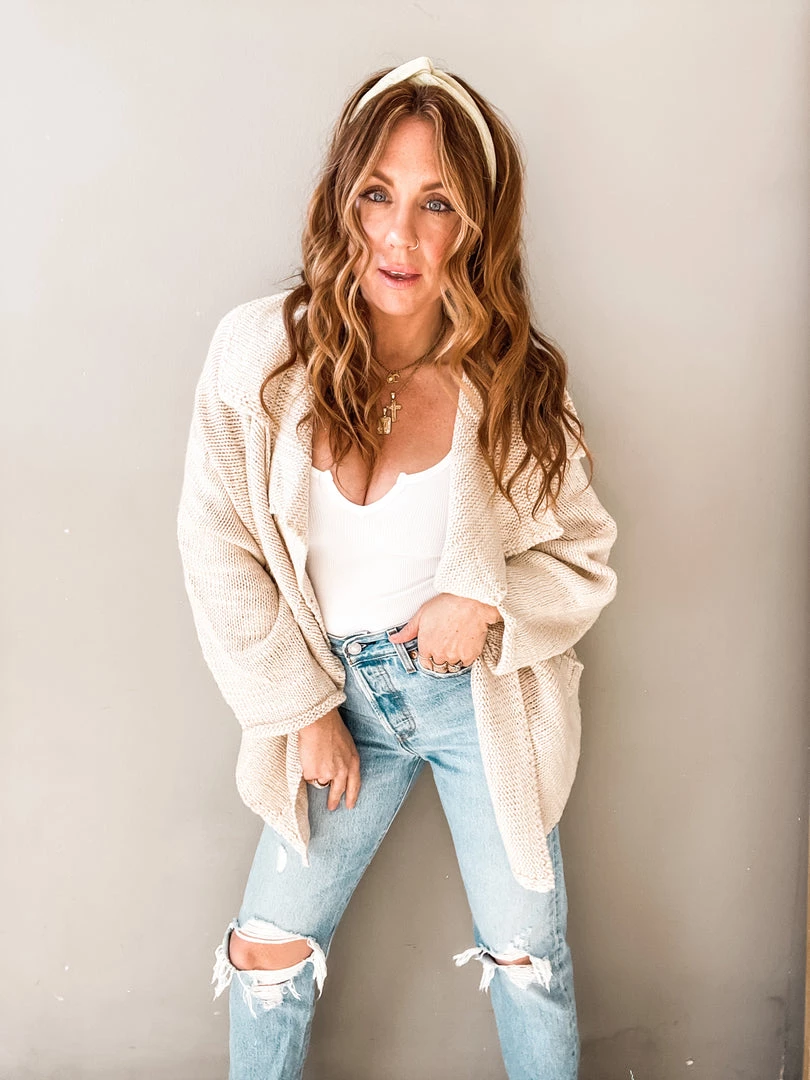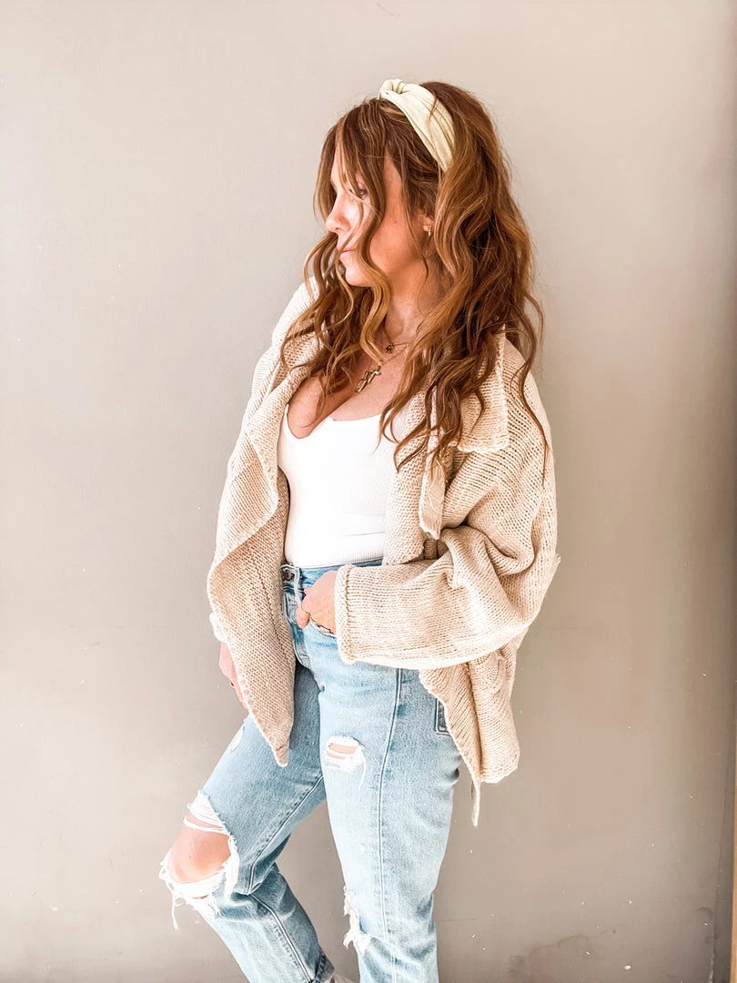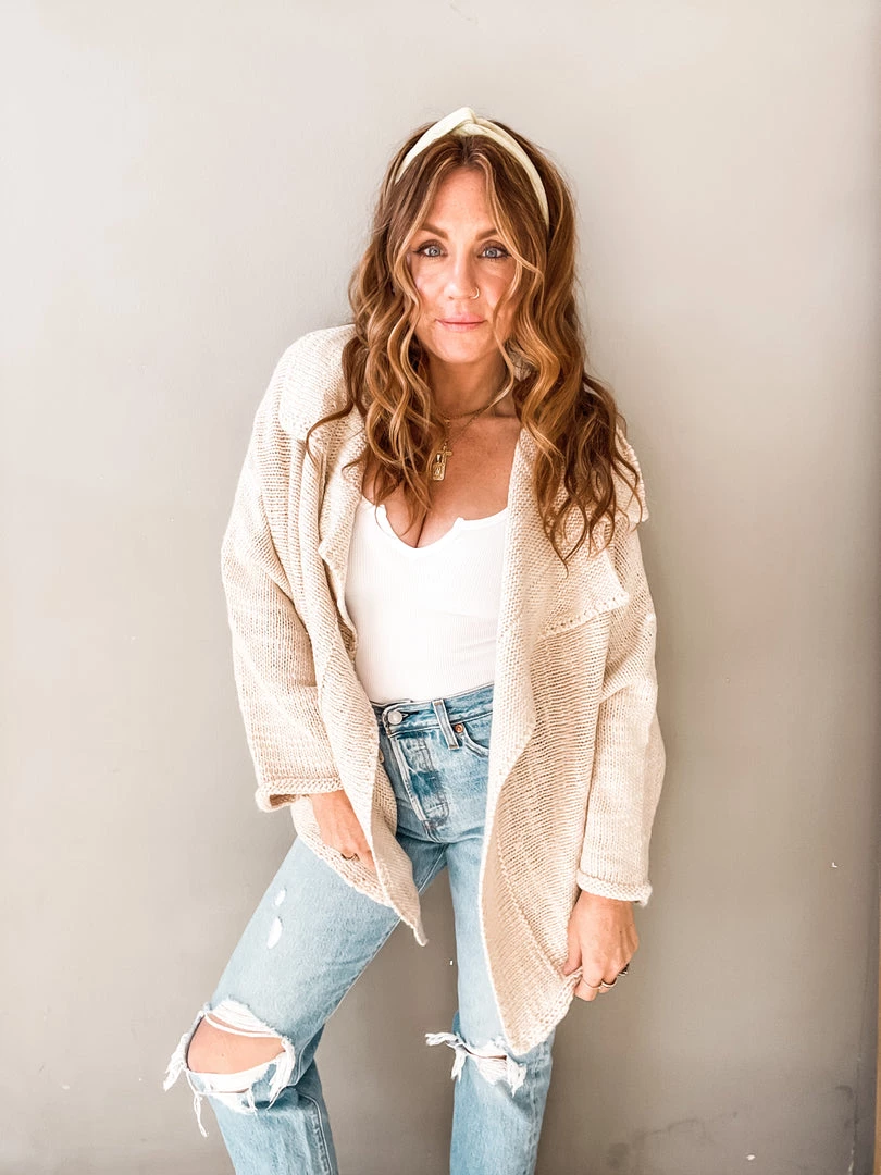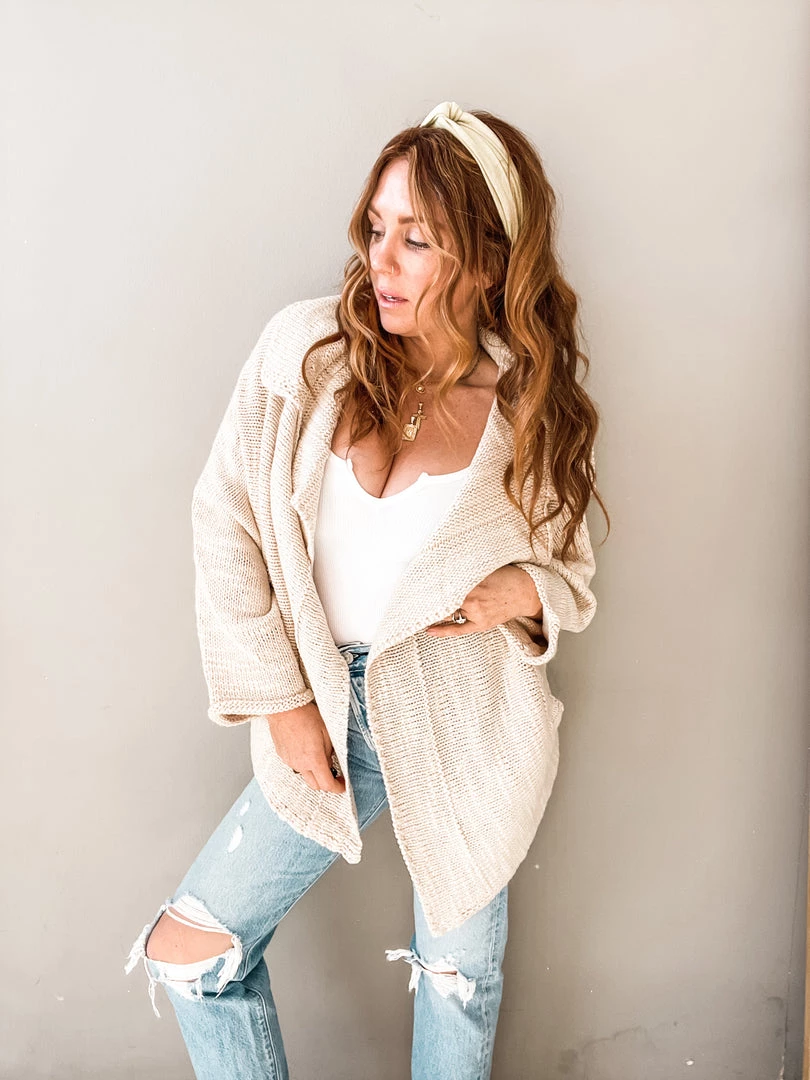 It’ll be our secret that this cardigan feels as cozy as pajamas. This natural and neutral piece is a closed knit shawl cardigan with just the right amount of slouch that makes it the perfect toss on. All this statement piece needs is a great basic tank and some high waisted jeans for a cool girl look we love!